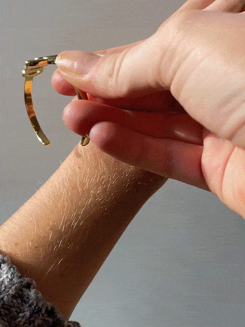 This classic cuff gets a modern update in our script font. Type out any personalization you please and your customization will appear in a pretty script font. The nameplate sits on an adjustable gold cuff. Please note: your customization will appear in all lowercase letters.