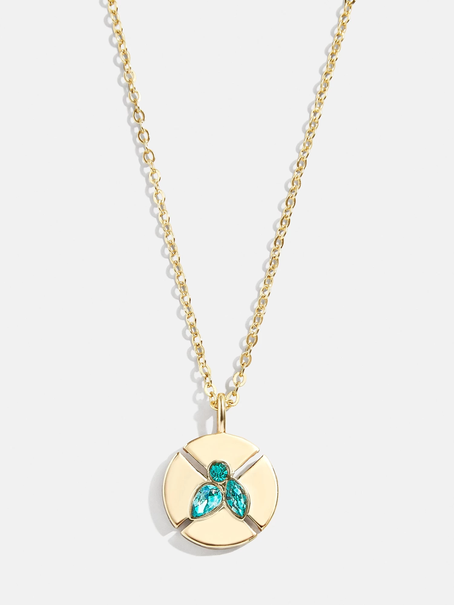 The Birthstone Pendant Necklace lets you honor your special day in an extra modern way. This necklace features a gold-plated circle pendant with a teardrop-shaped gem of your birthday month, strung on a classic gold chain. It’s the perfect classic addition to any accessory repertoire.