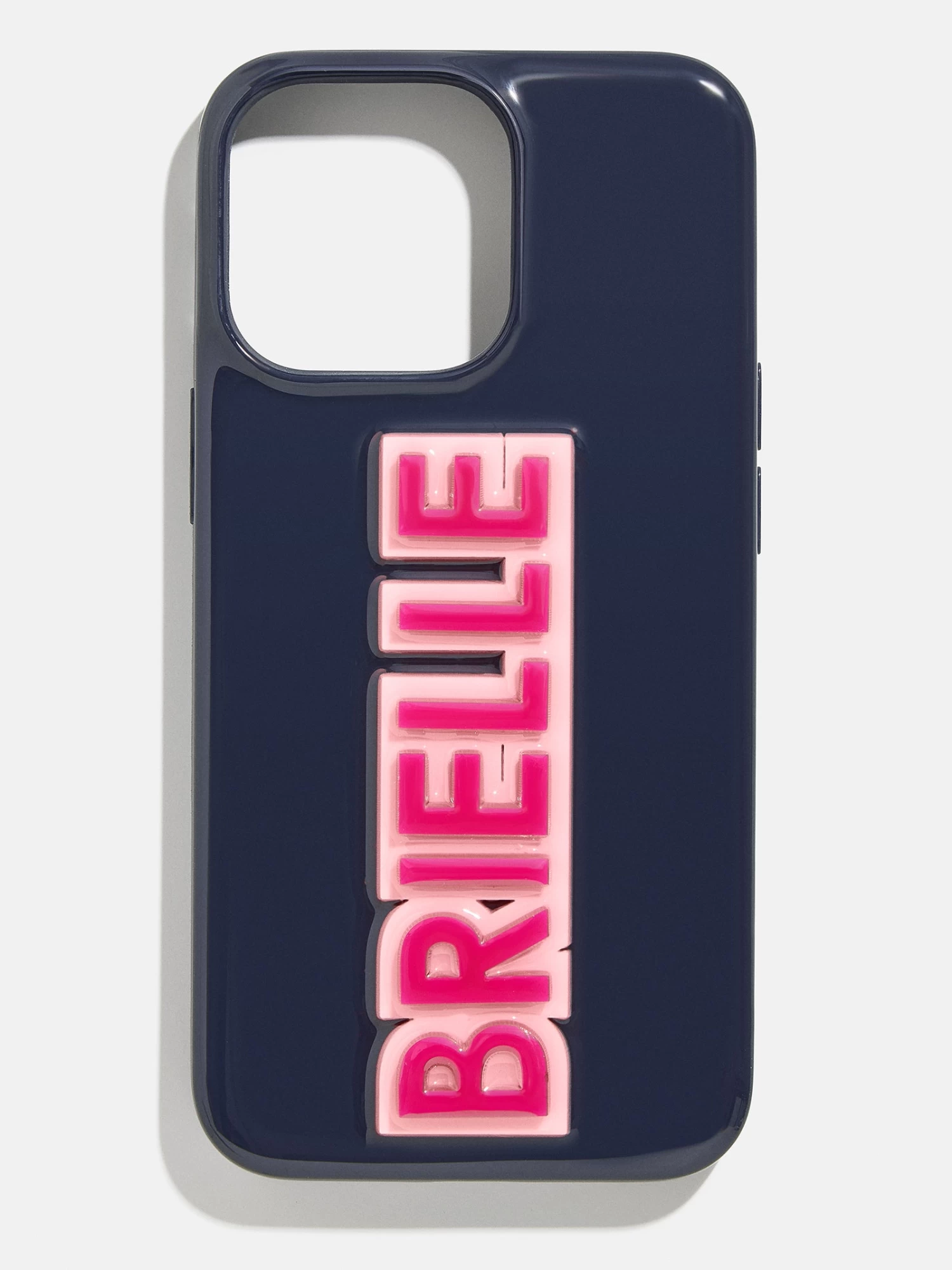 Opt for a pop of color when you choose this custom tech accessory. The Block Font iPhone Case is complete with a glossy navy finish and pink cutout letters in a block font. We added a border of pearl to the letters to ensure that your personalization pops.