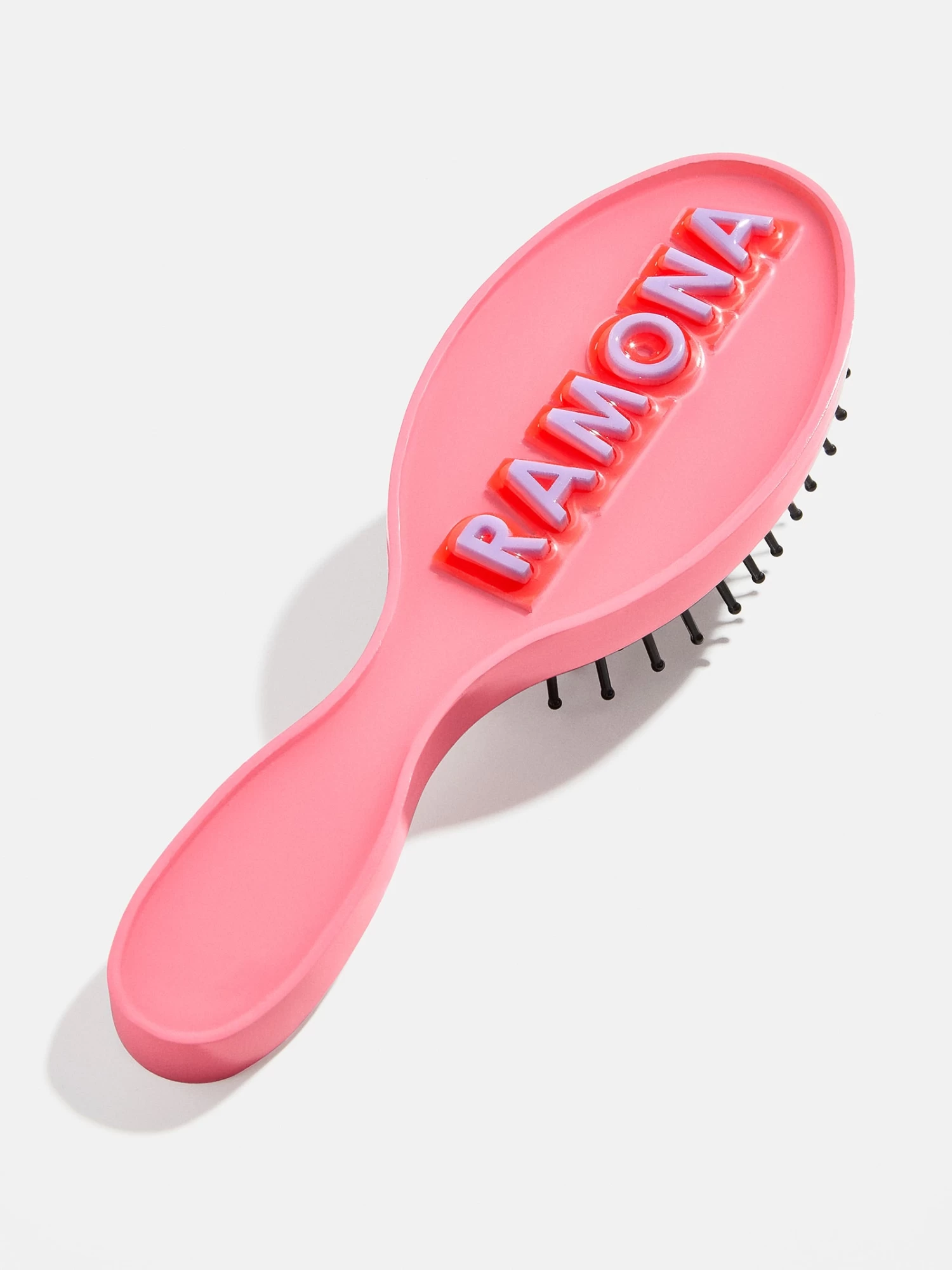 Our Block Font Mini Custom Hair Brush is the perfect on-the-go accessory. Its petite size and durable finish make it ideal for throwing in a purse, carry-on, beach bag, or car. Add your name, initials, or a favorite phrase to make it 100% yours. The letters on the Block Font Mini Custom Hair Brush help your personalization stand out with puffed-up letters and a background in a complementary color.