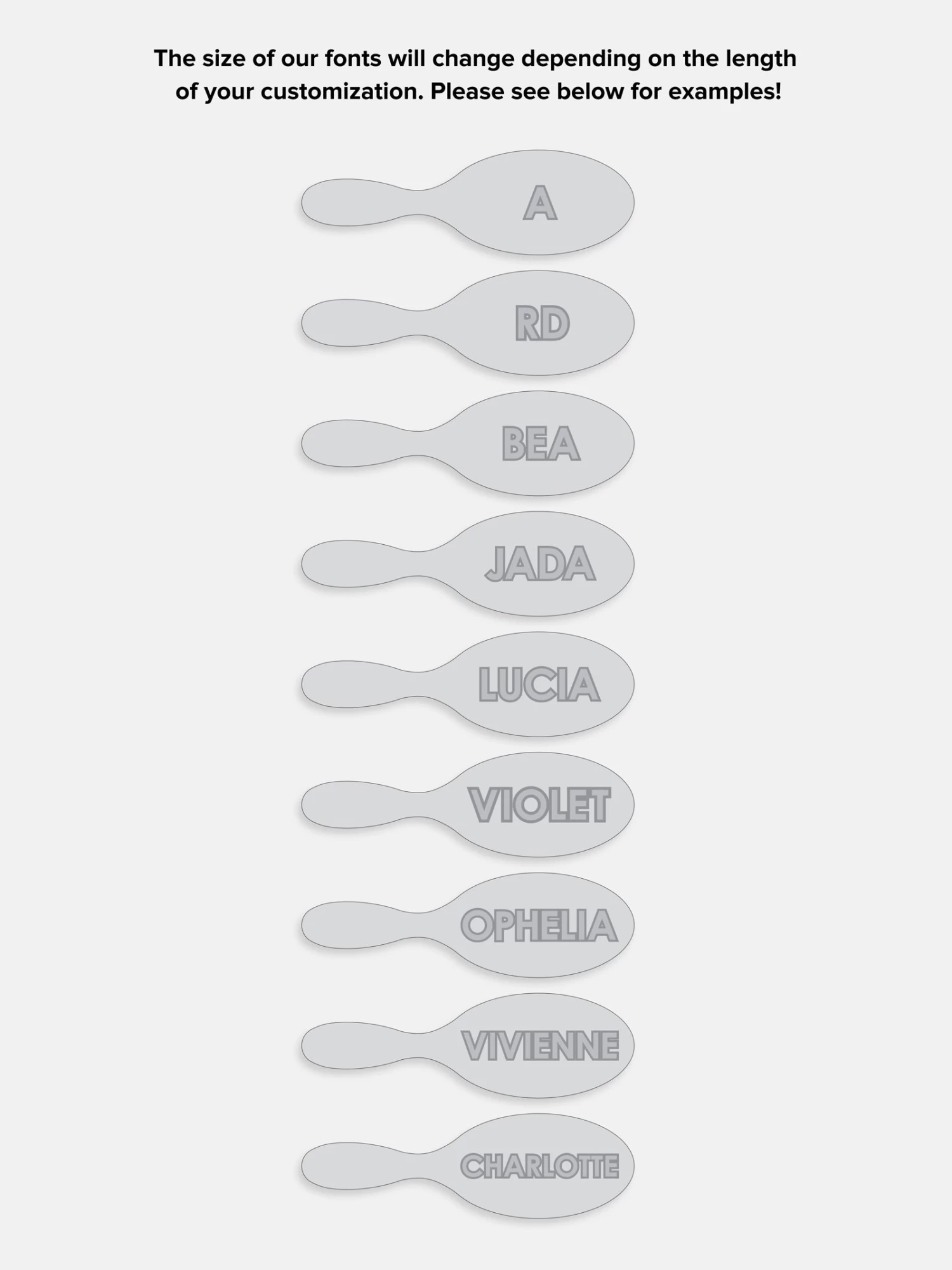 ABOUT OUR CUSTOM HAIR BRUSHES: Our collection of custom hair brushes make your everyday routine just a little more extra – because why not? Inspired by our best-selling custom phone cases, each is crafted with a sturdy, substantial, and water resistant acetate base. Every letter is also made with durable acetate and hand-cut to your specifications. The raised nature of the letters creates a fun, 3D effect. Finally, each of the bristles is made from nylon and silicone, reducing static and/or tangles. Fun fact: each brush is crafted in a dust-free room, ensuring that your piece will be absolutely perfect and free of any flaws.