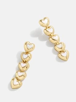 Wear your heart (or hearts) on your sleeve with the Caroline Earrings. Made with gold-tone plated brass and a unique, white shell interior, the Caroline Earrings give a classy touch without overtaking your style.