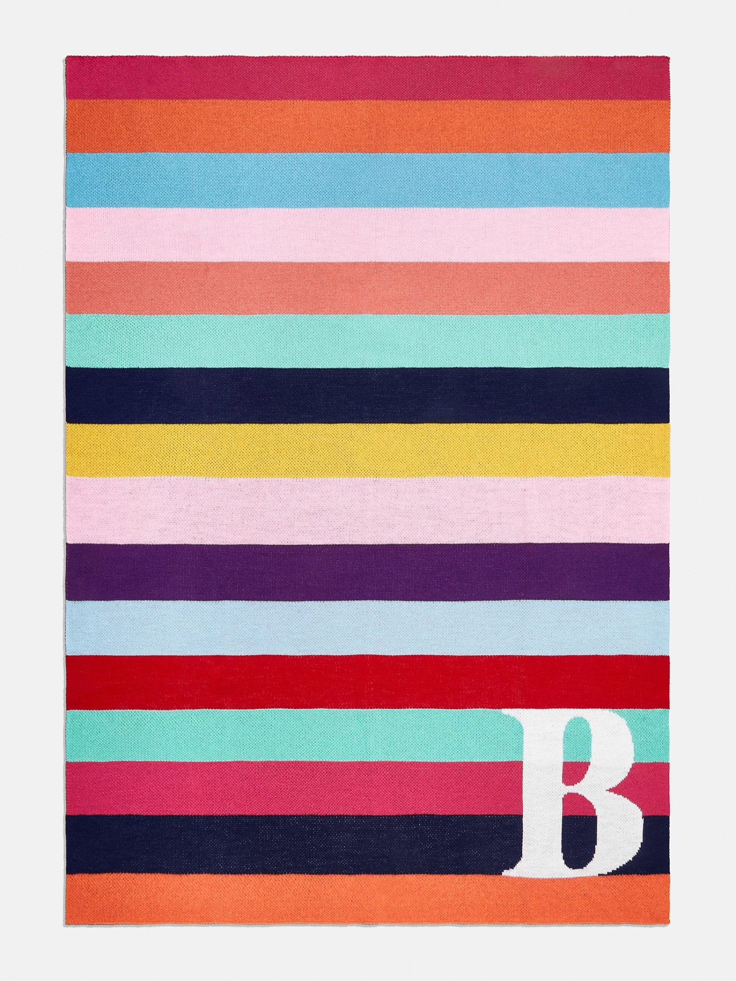 This blanket passes any style test with flying colors. The Color Outside the Lines Custom Blanket features multicolored stripes and the meaningful letter of your choice. Add this to your favorite room for a pop of color and personalization. Please check the product details for measurements.