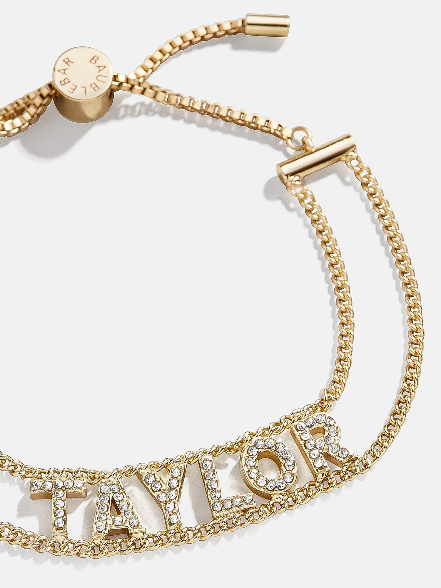 The Custom Pavé Nameplate Bracelet features two strands of box chain that sit beneath letter beads of your choice and is topped off with an easily adjustable pull-tie closure. Each bead is crafted in a block font and features intricate pavé detail. Choose a name, initials, or favorite phrase to customize your bracelet with – it’s sure to be your new everyday staple. See our Letter Key for all options available.