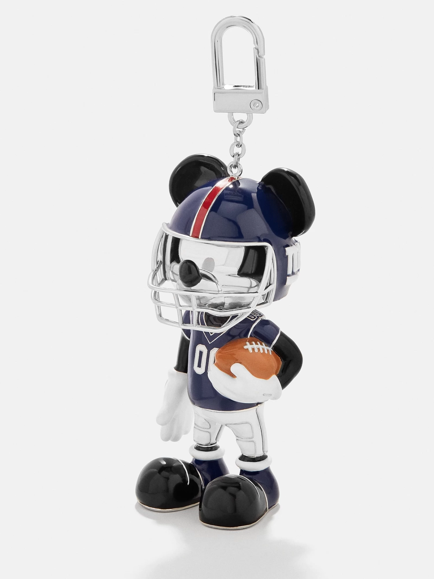 Disney and NFL come together in this design to create the most adorable – and athletic – Disney Bag Charm yet. Mickey Mouse is decked out in the uniform belonging to the team of your choice, and even holds a tiny football in his gloved hand. Crafted with chic enamel and endless detailing, this is the perfect way to combine both of your passions. Add to any purse, bag, or backpack to rep your NFL team pride.