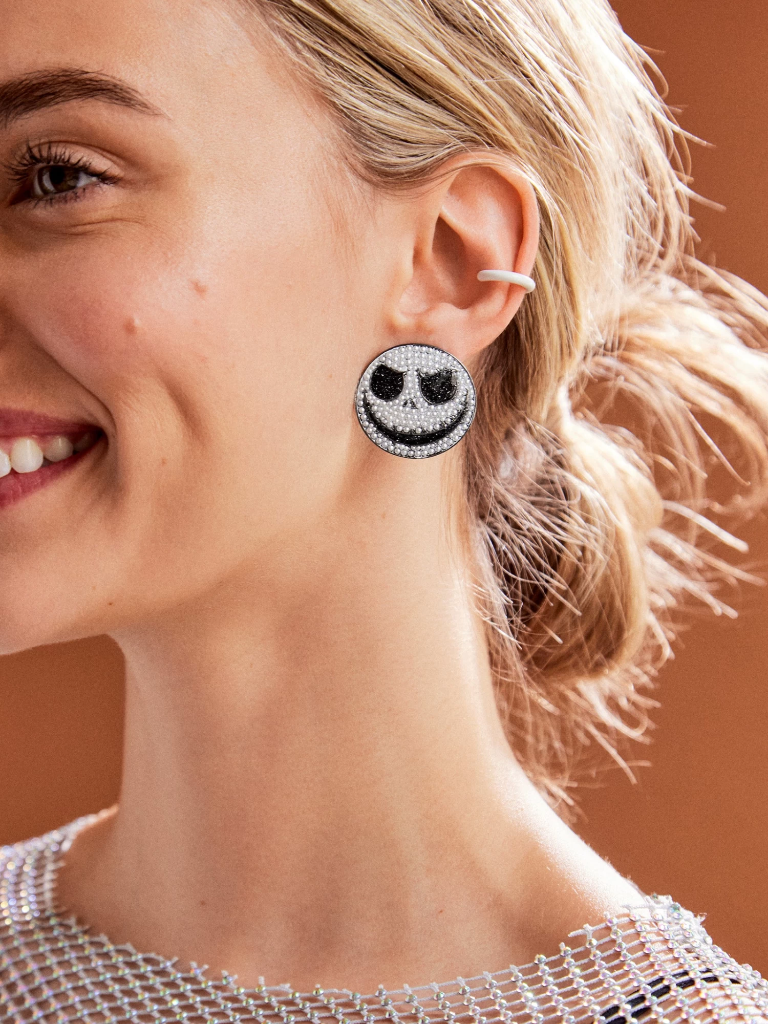 These fun statement studs lend an honorary ode to Disney Tim Burton’s Nightmare Before Christmas. Jack himself is covered in pretty pearls, adding fun texture to this beloved character. His eyes and mouth are crafted with glittery black enamel. Wear to every event you have planned this Halloween for something that’s decidedly spooky.