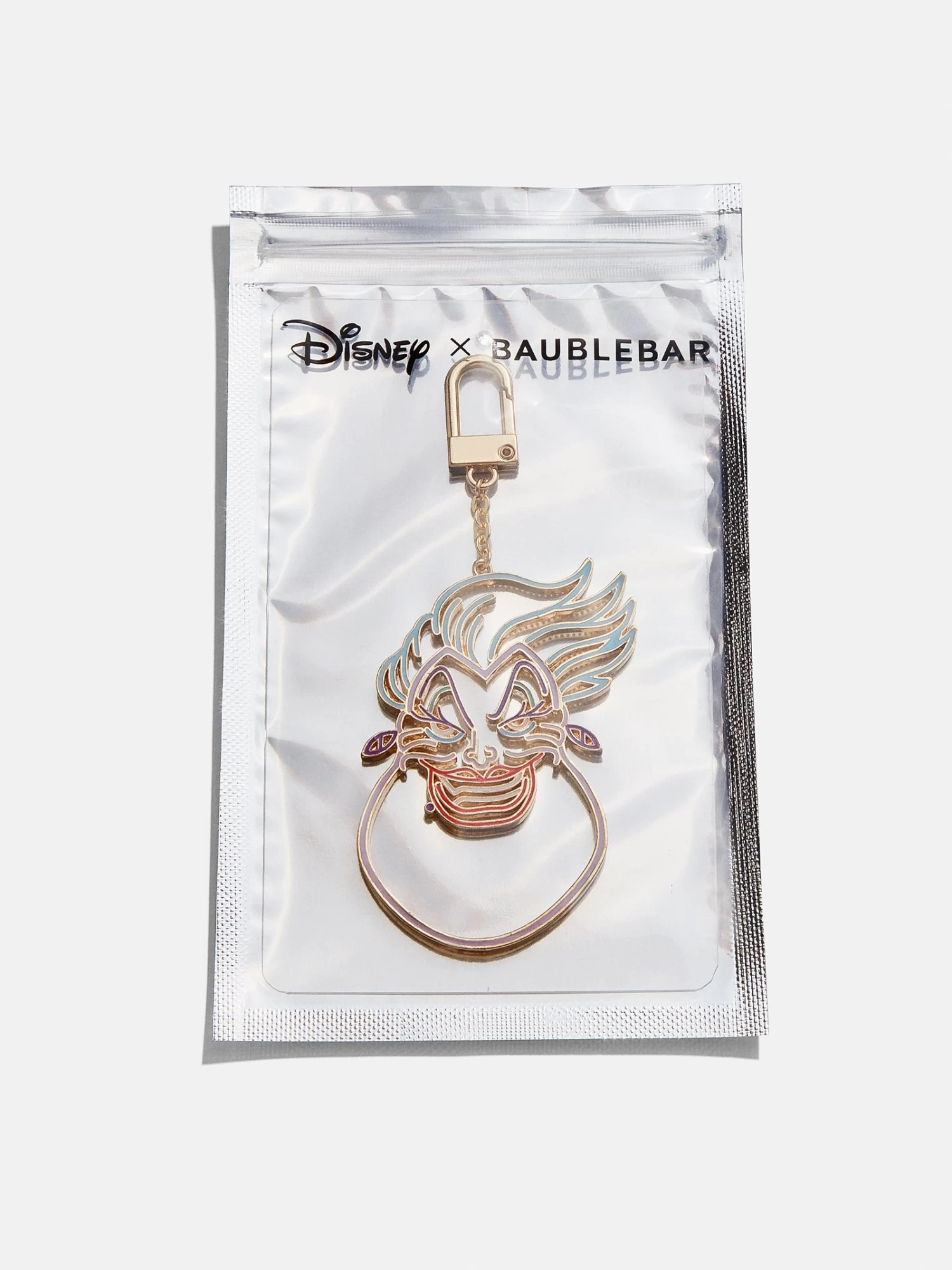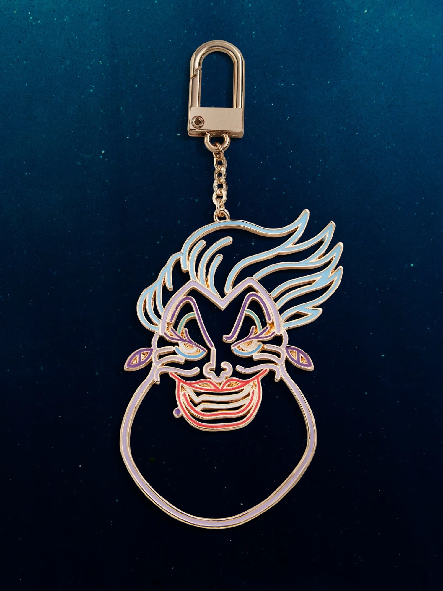 This fun, 2D version of our best-selling Disney Bag Charms offers the perfect amount of sinister style to your wardrobe. Ursula is crafted with shiny enamel and chic cutouts that give this one-of-a-kind accessory the perfect amount of edge. At night, Ursula glows in the dark! Clip on to any purse, tote, or backpack for a fun ode to your favorite Disney Villain. During the day, leave them in the sun or strong indoor lighting to guarantee a statement at night.