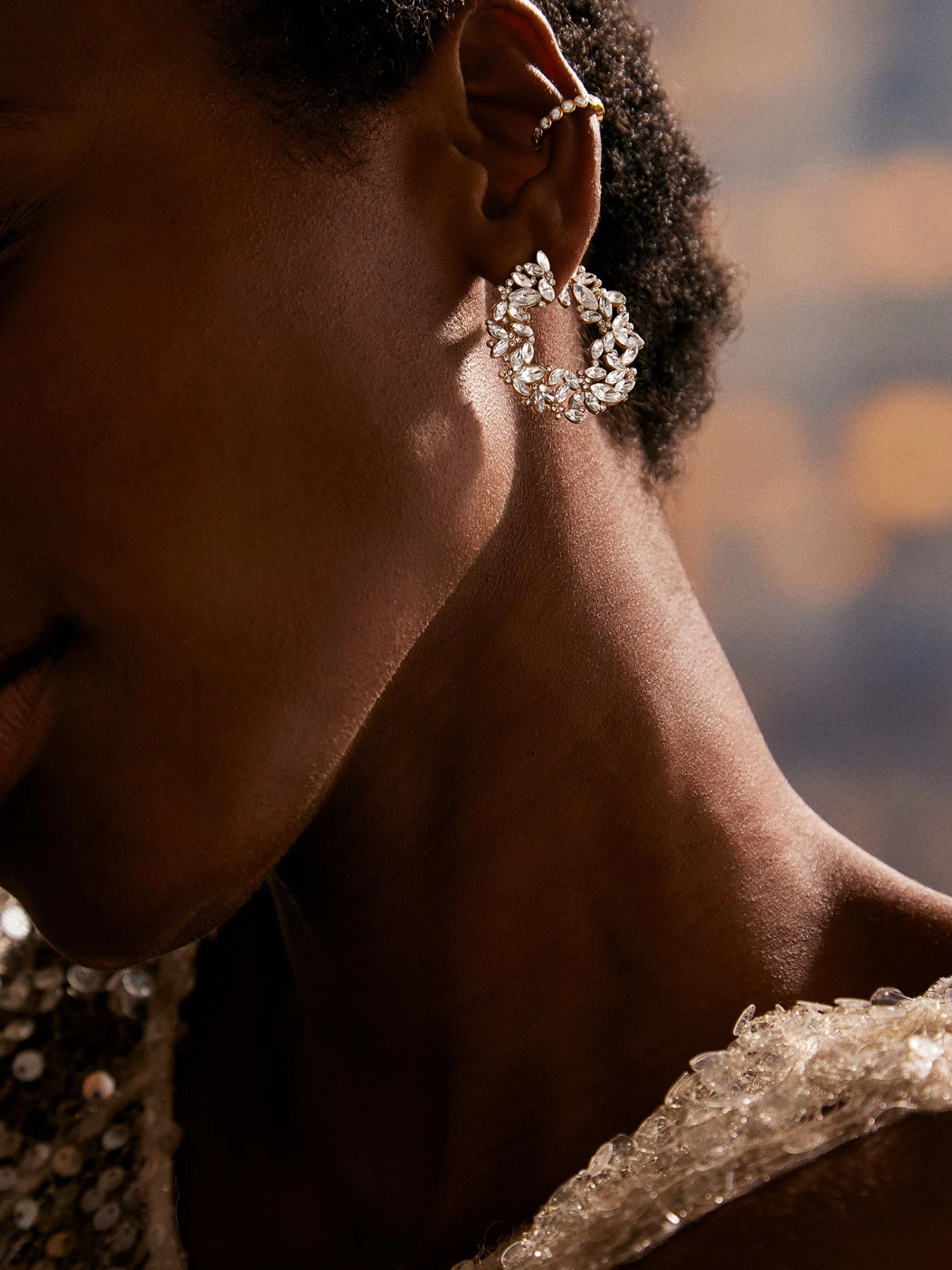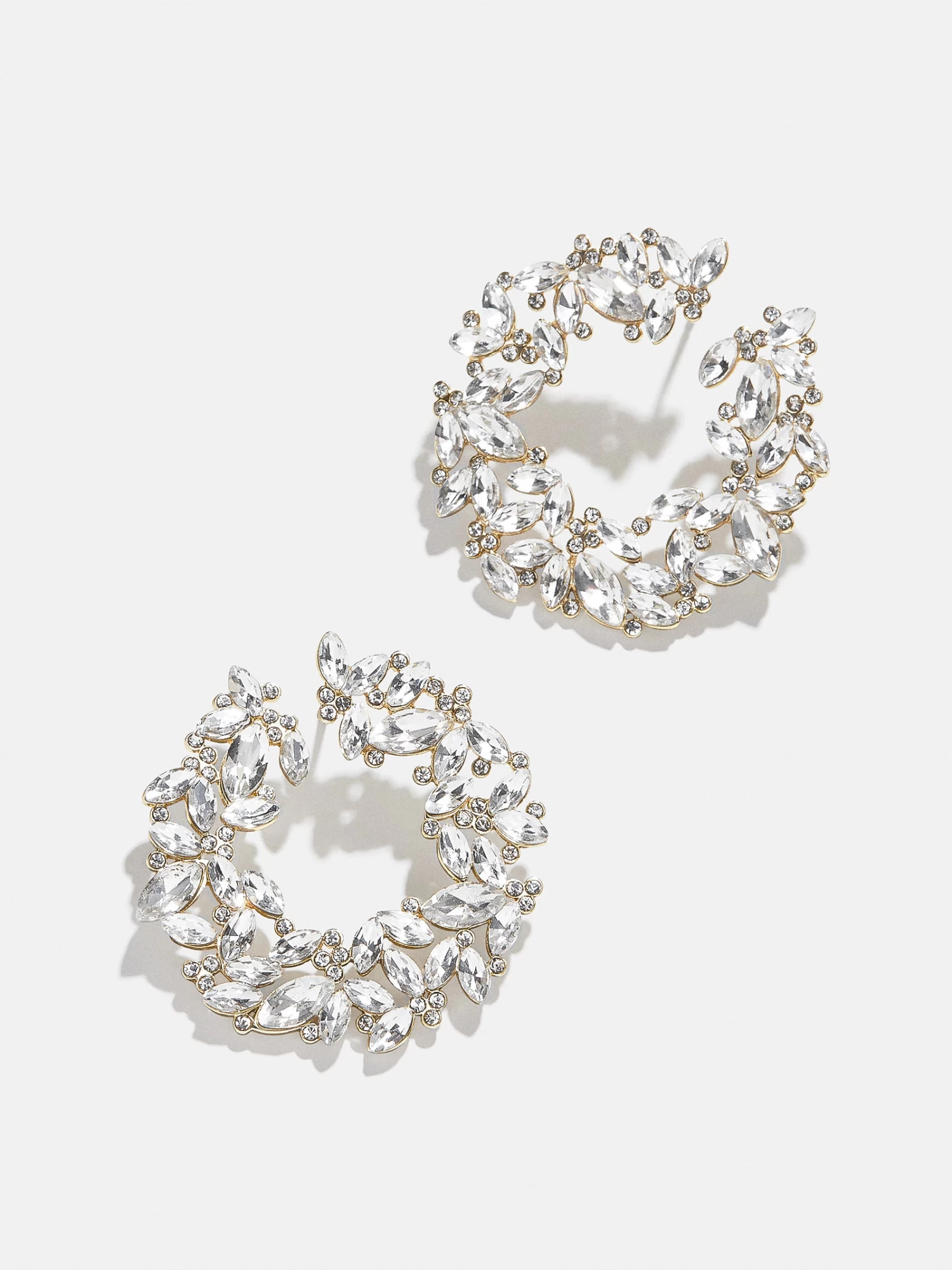 Bring your look full circle with the Ellis Earrings. Glamourous and eye-catching, these earrings are crafted with gold-plating and mixed-stone crystals for added texture and intrigue. Fasten with post back closures and sport with your favorite outfit for a look that works for the office and date night.