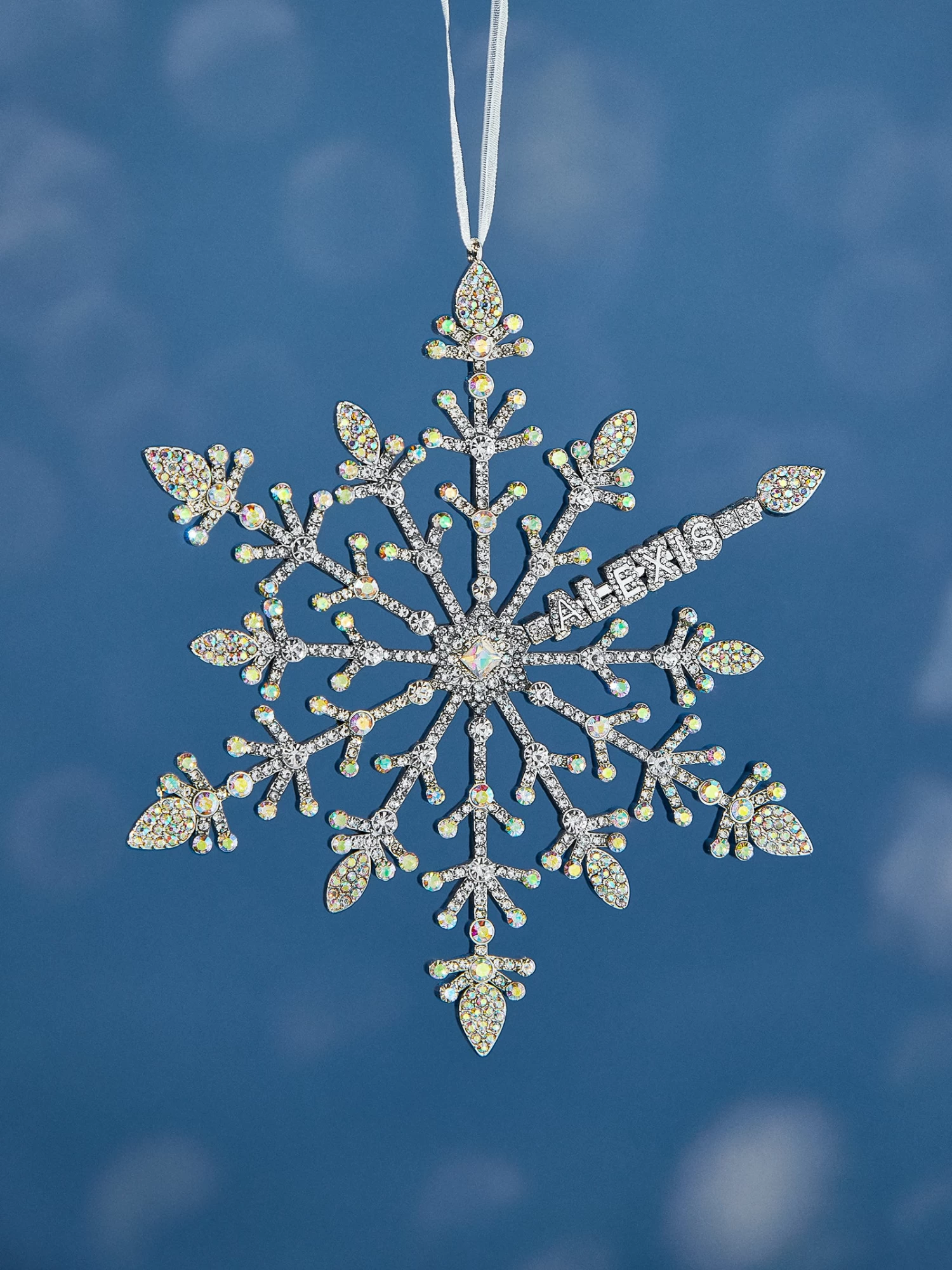 Add something that sparkles to your tree this year. A beautifully adorned one-of-a-kind custom snowflake ornament features embellished words to fit the customization of your choice.