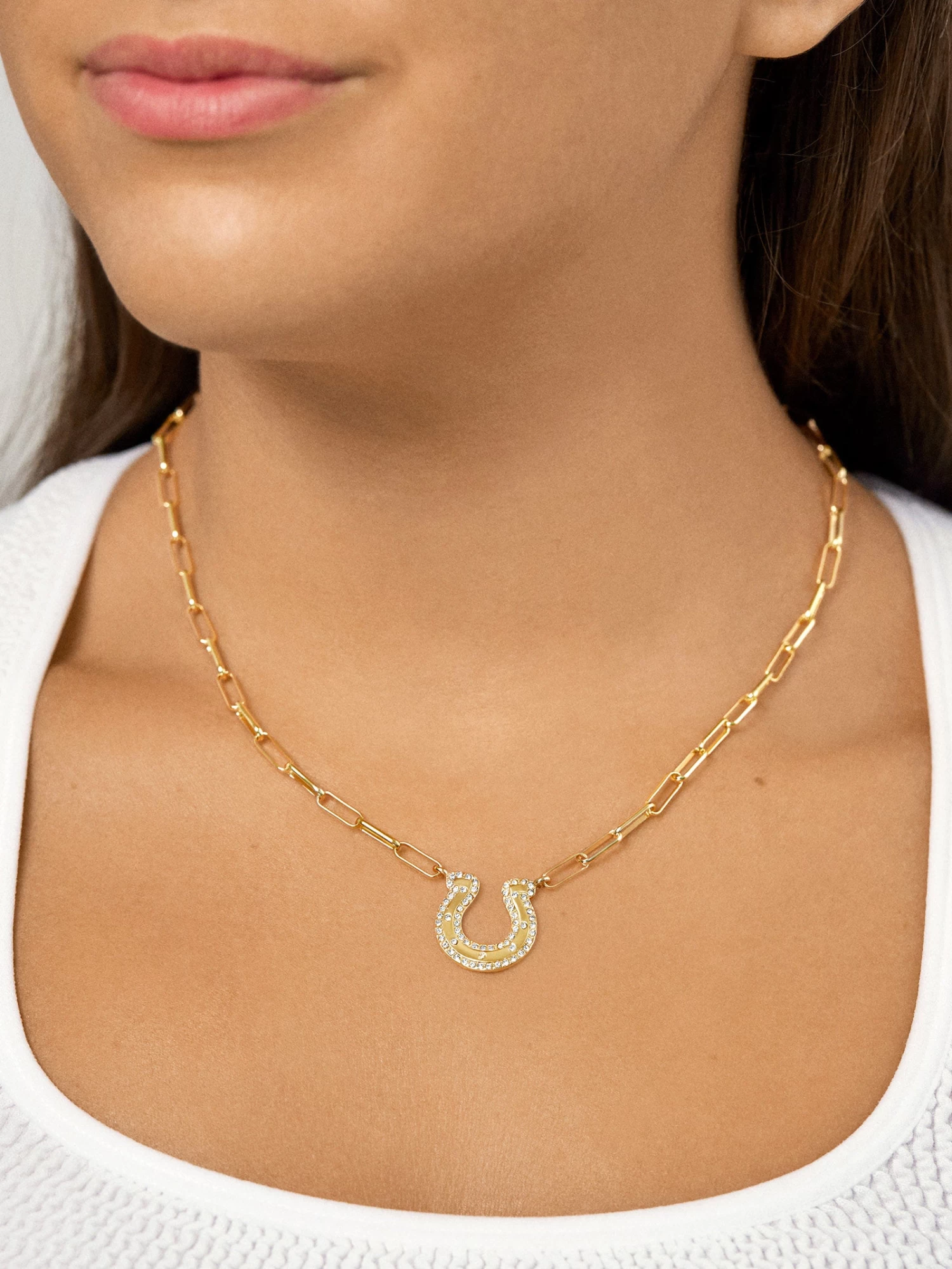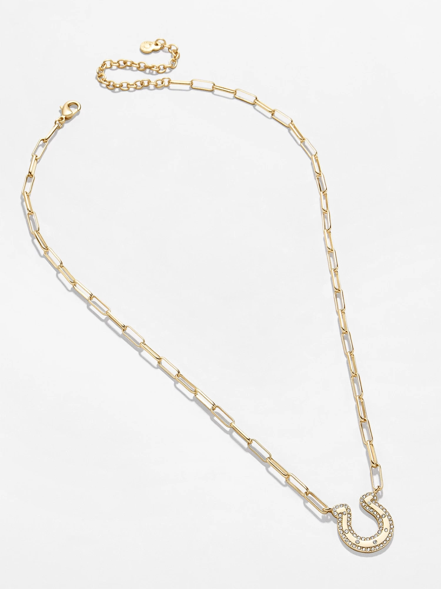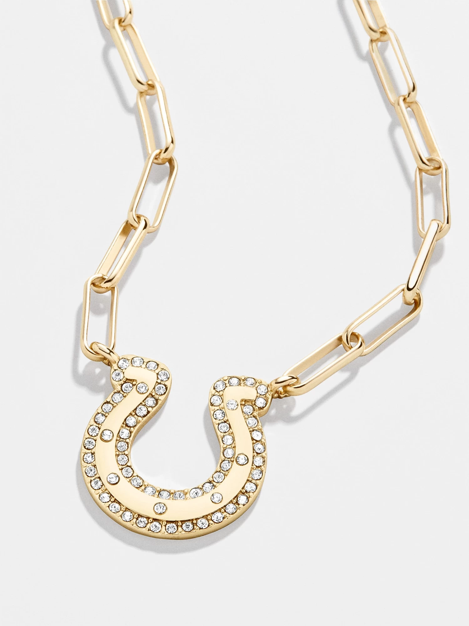 For The Shoe. No necklace stack would be complete without a little team spirit. This Indianapolis Colts gold chain nameplate features the team’s iconic horse shoe emblem.