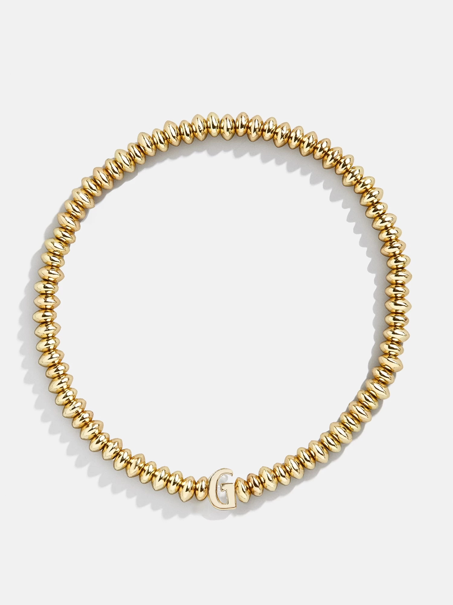 Stack something with a personal touch like the Initial Paris Bracelet – Gold. Crafted with our signature Paris bead, this beaded stacking bracelet features the initial of your choice in the center crafted in a sleek gold font. Choose to sport your initial, that of a loved one, or stack a few of these initial bracelets to represent the whole family.
