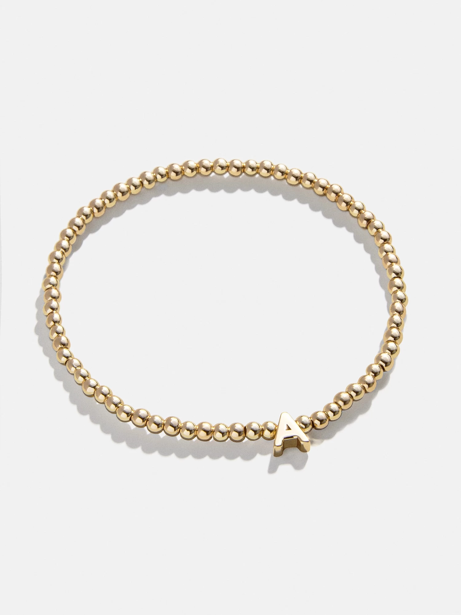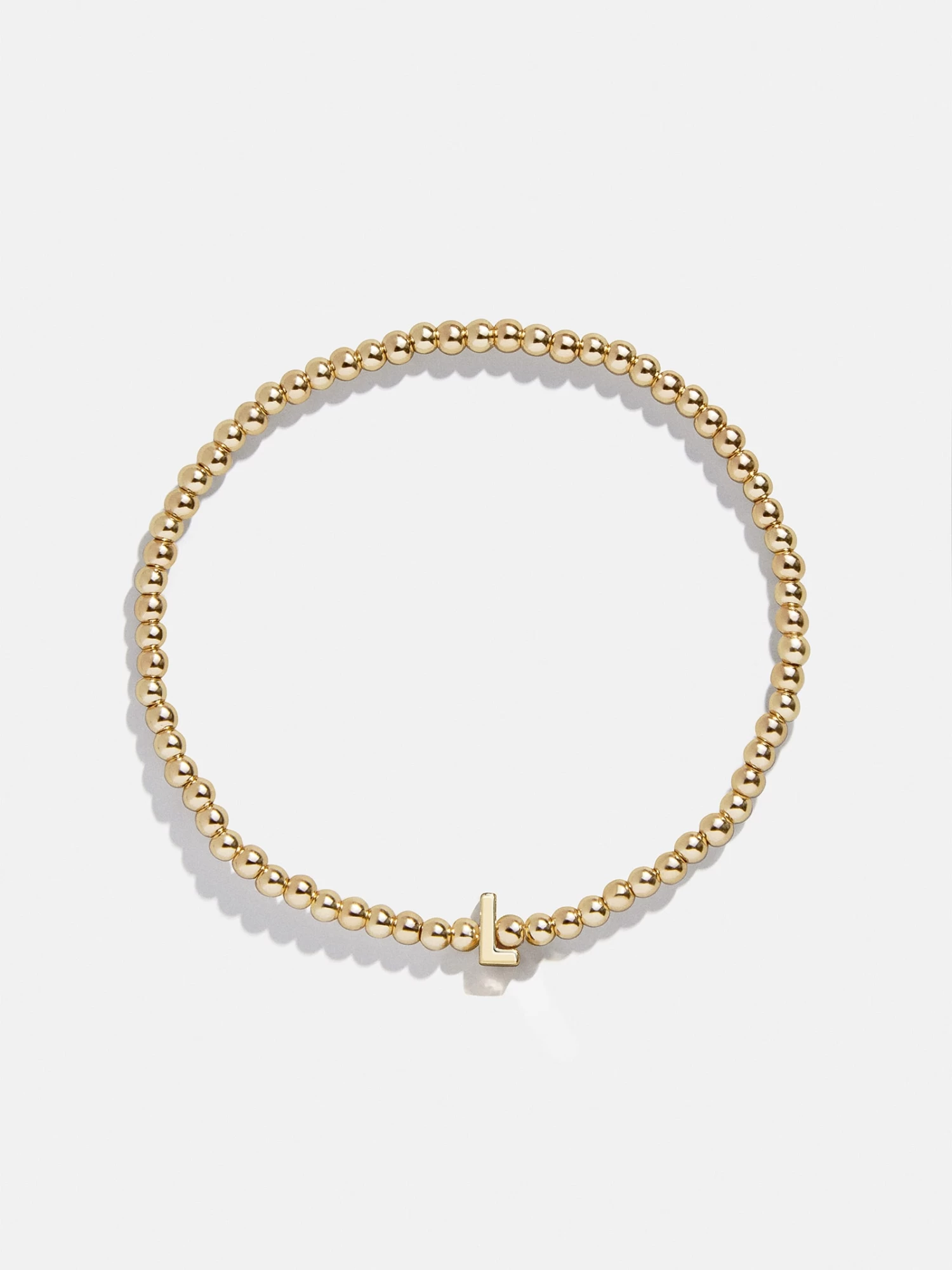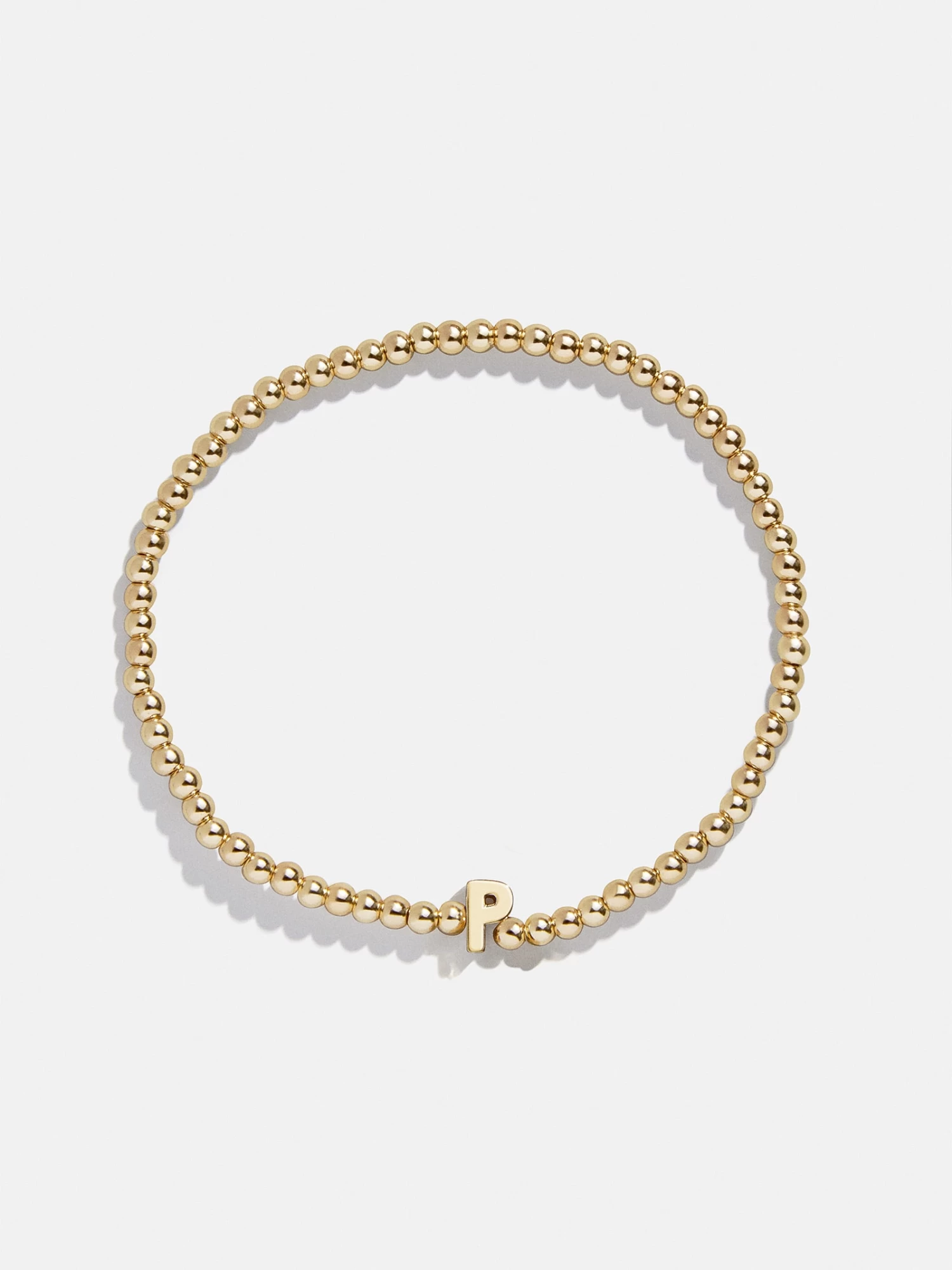 Stack something with a personal touch with the Initial Pisa Bracelet. Crafted with our signature pisa bead, this beaded stacking bracelet features the initial of your choice in the center crafted in a sleek gold font. Choose to sport your initial, that of a loved one, or stack a few of these initial bracelets to represent the whole family. This bracelet features 3mm gold beads.