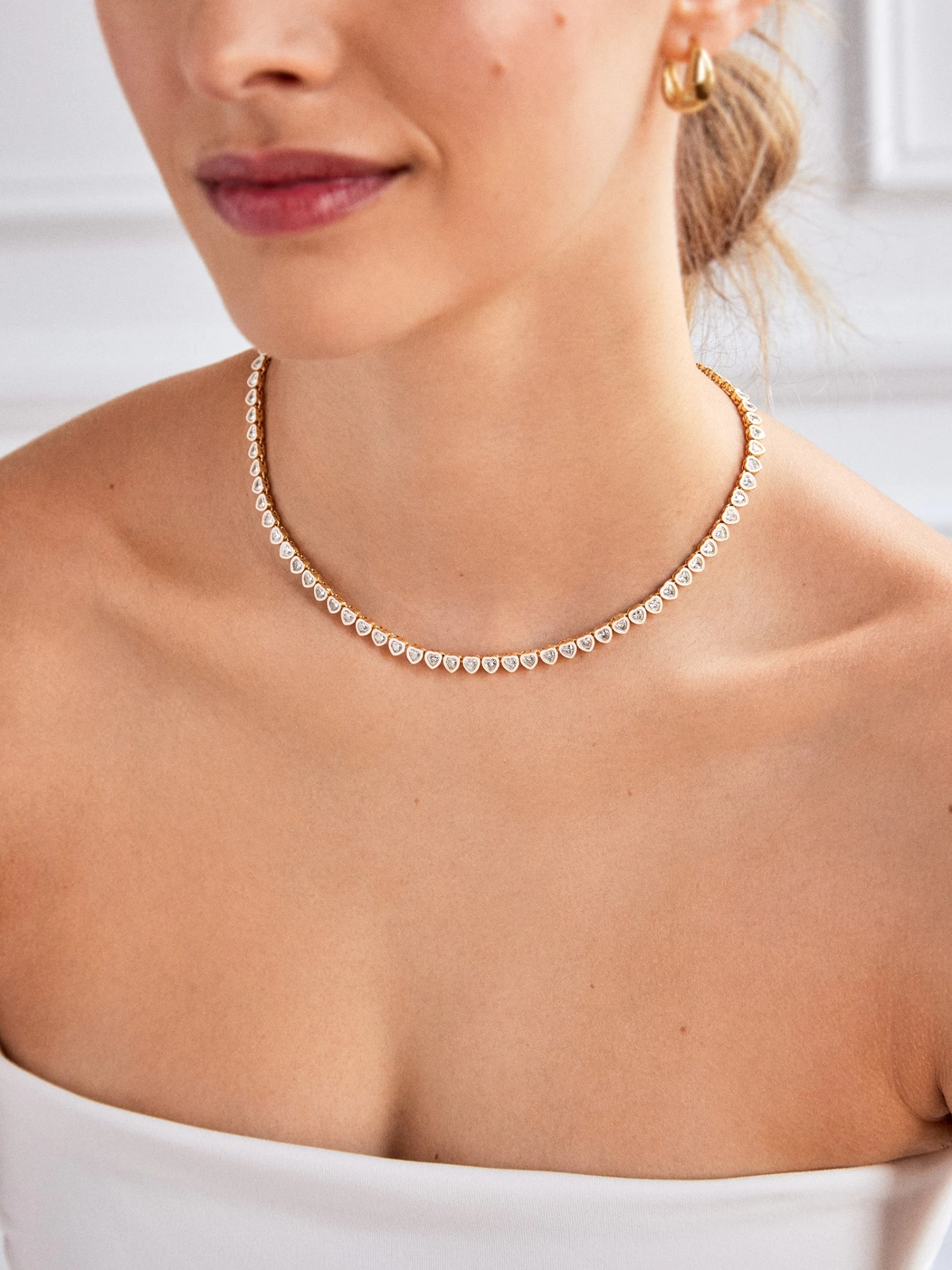 Our Kali collection just got another style that’s sure to become one of your everyday favorites. The Kali Necklace features an eternity necklace band fitted with heart-shaped clear crystals. It’s the perfect necklace to add to your collection.
