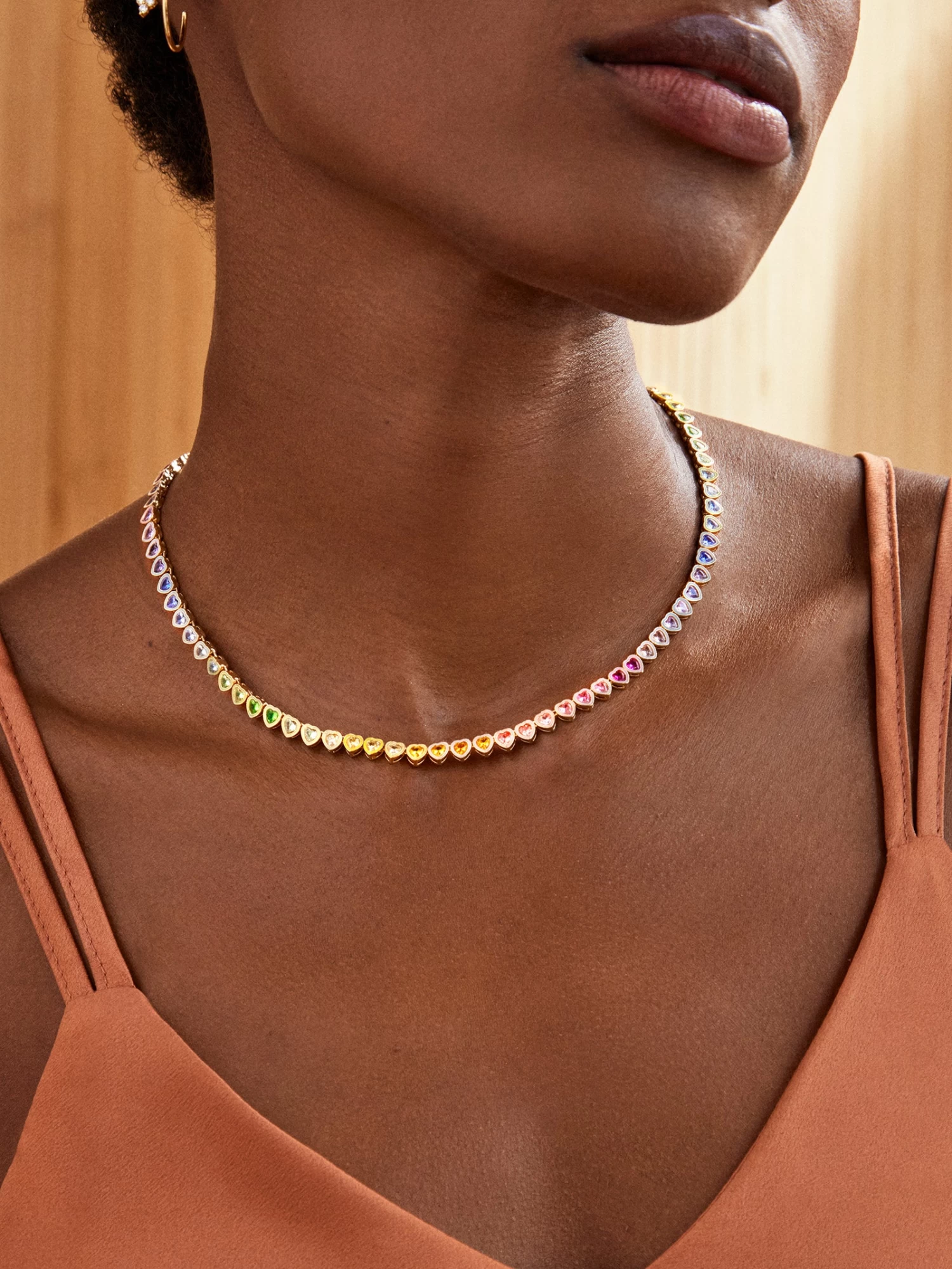 Our Kali collection just got another style that’s sure to become one of your everyday favorites. The Kali Necklace features an eternity necklace band fitted with an ombre of heart-shaped rainbow crystals. It’s the perfect pop of color to add to your collection.