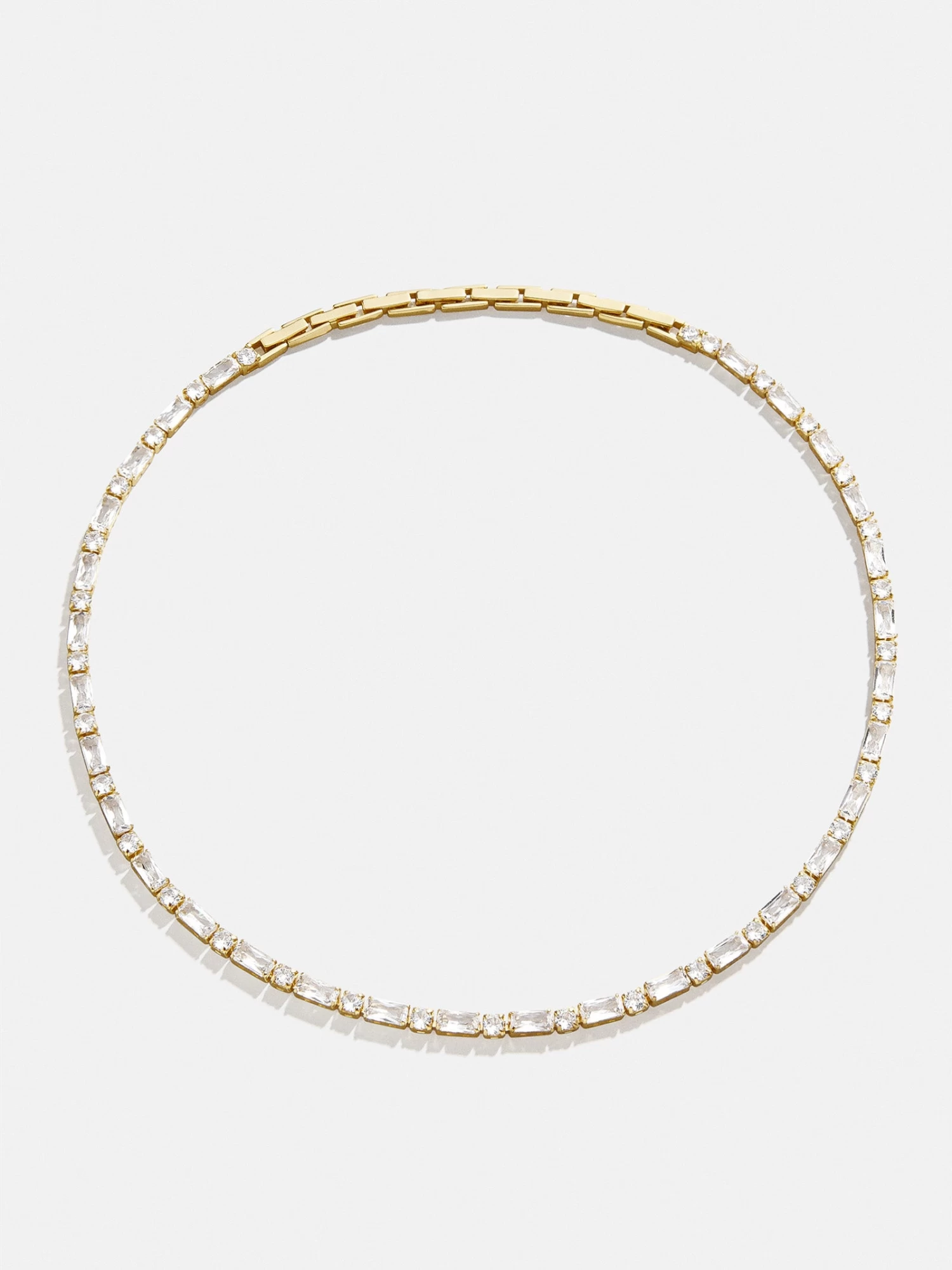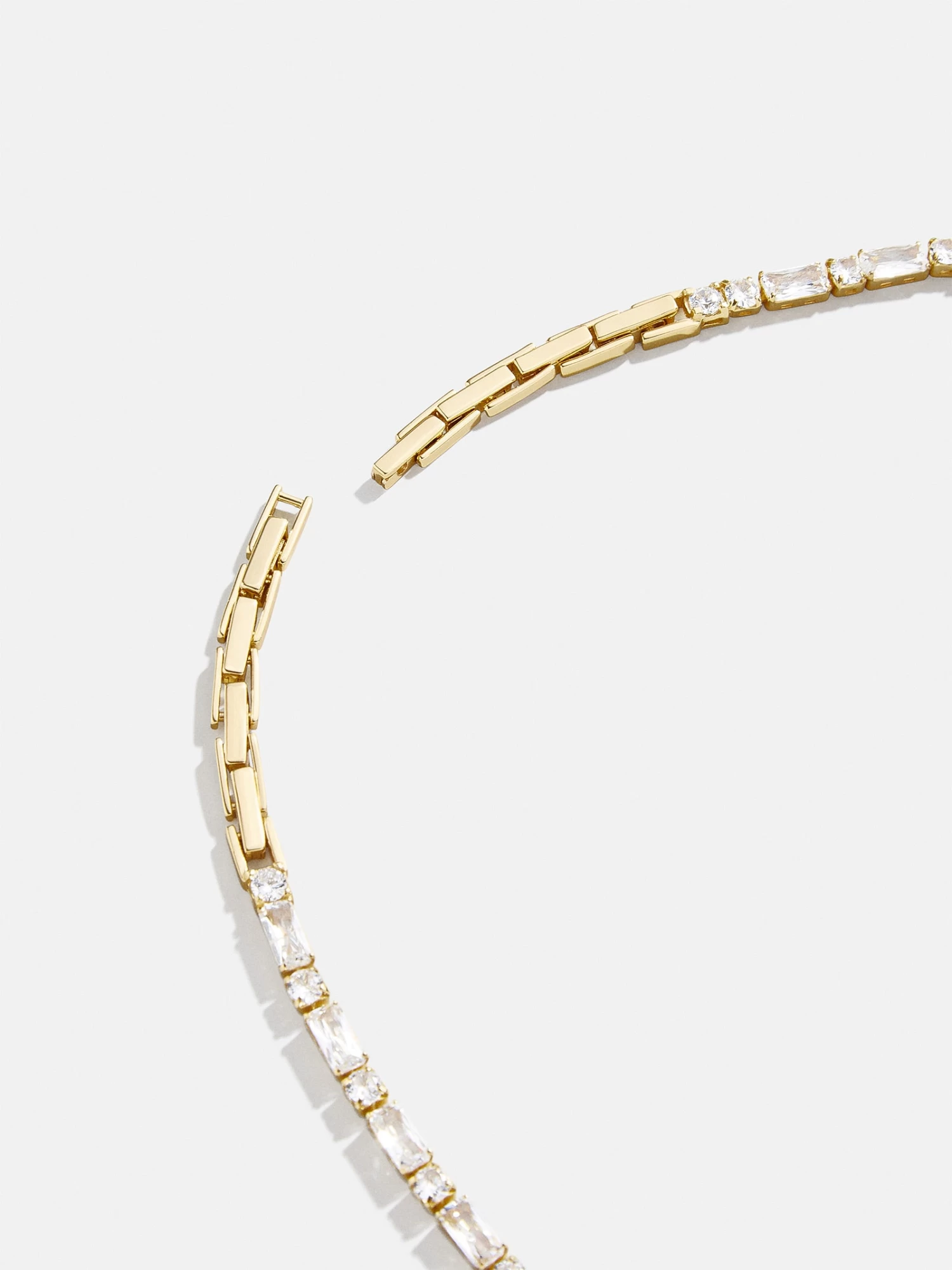 The Kerri 18K Gold Adjustable Tennis Necklace is a modern update to the classic tennis necklace silhouette. A bevy of mixed-shape stones is crafted in a riviera-style design that you’re sure to reach for again and again. Better yet, this piece features 18K gold plated sterling silver and Cubic Zirconia stones, meaning it’ll last you a lifetime.