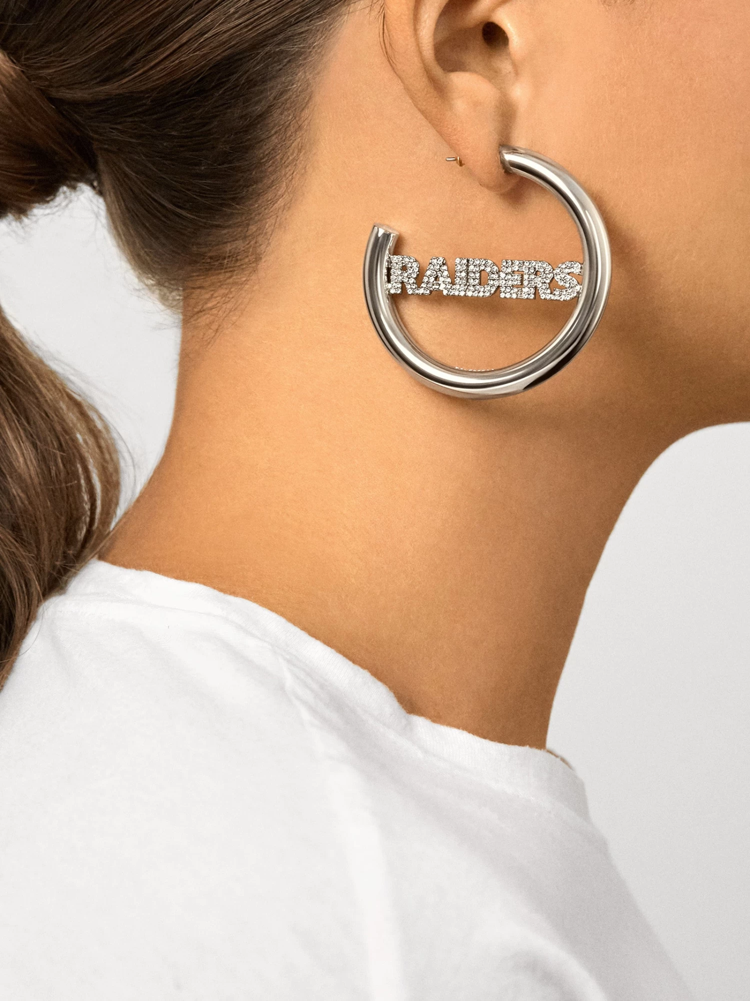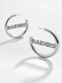 Rep the Raider Nation. Be the most fashionable fan in the stadium wearing the Las Vegas Raiders Logo Hoops. This classic silver hoop features the Raiders’ logo in pretty pavé for extra sparkle.