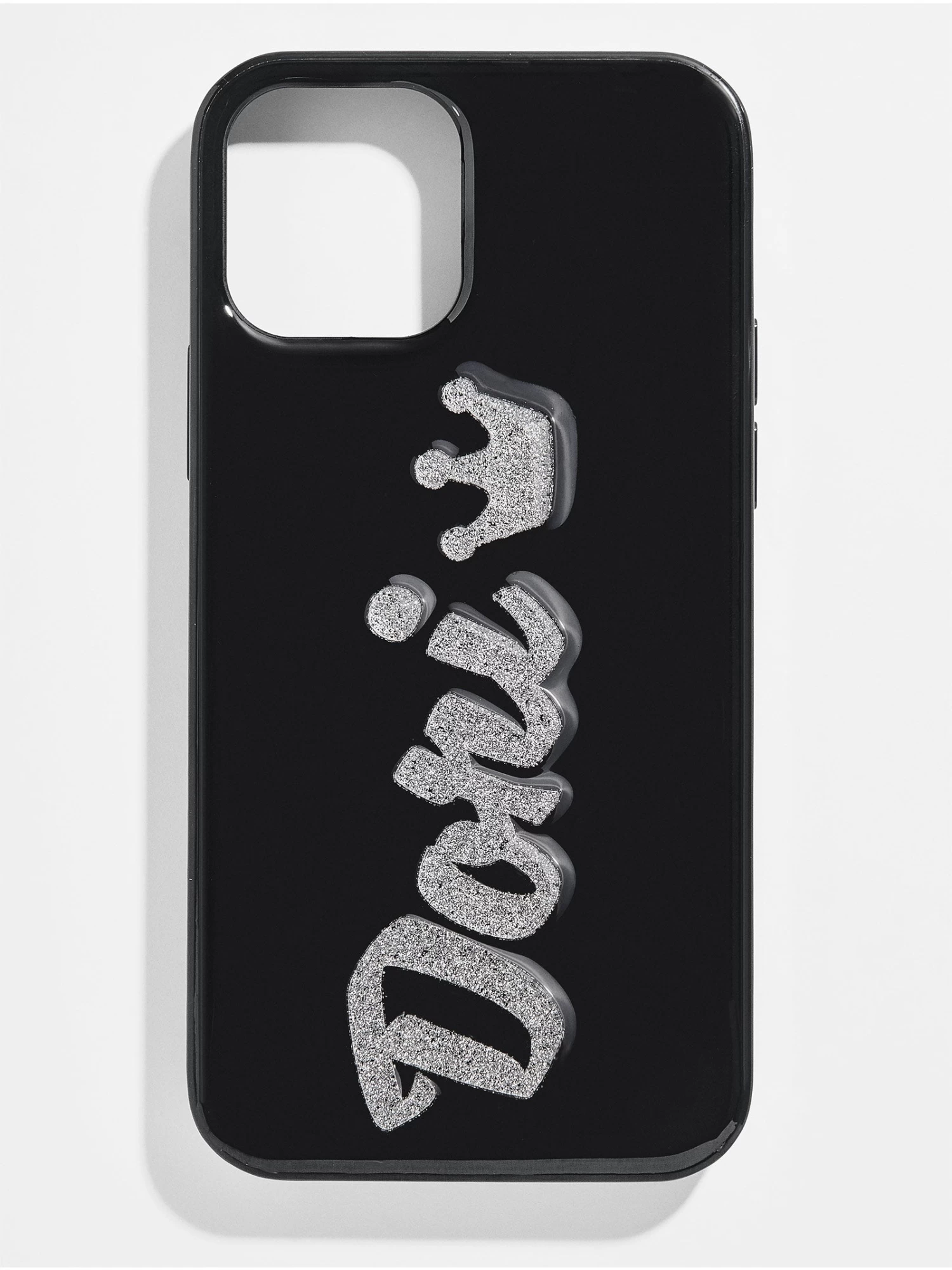 Add the customization of your choice to this glossy black case. Featuring silver glitter script font and the option to add a star, heart, or crown, this case is bound to earn you plenty of compliments.