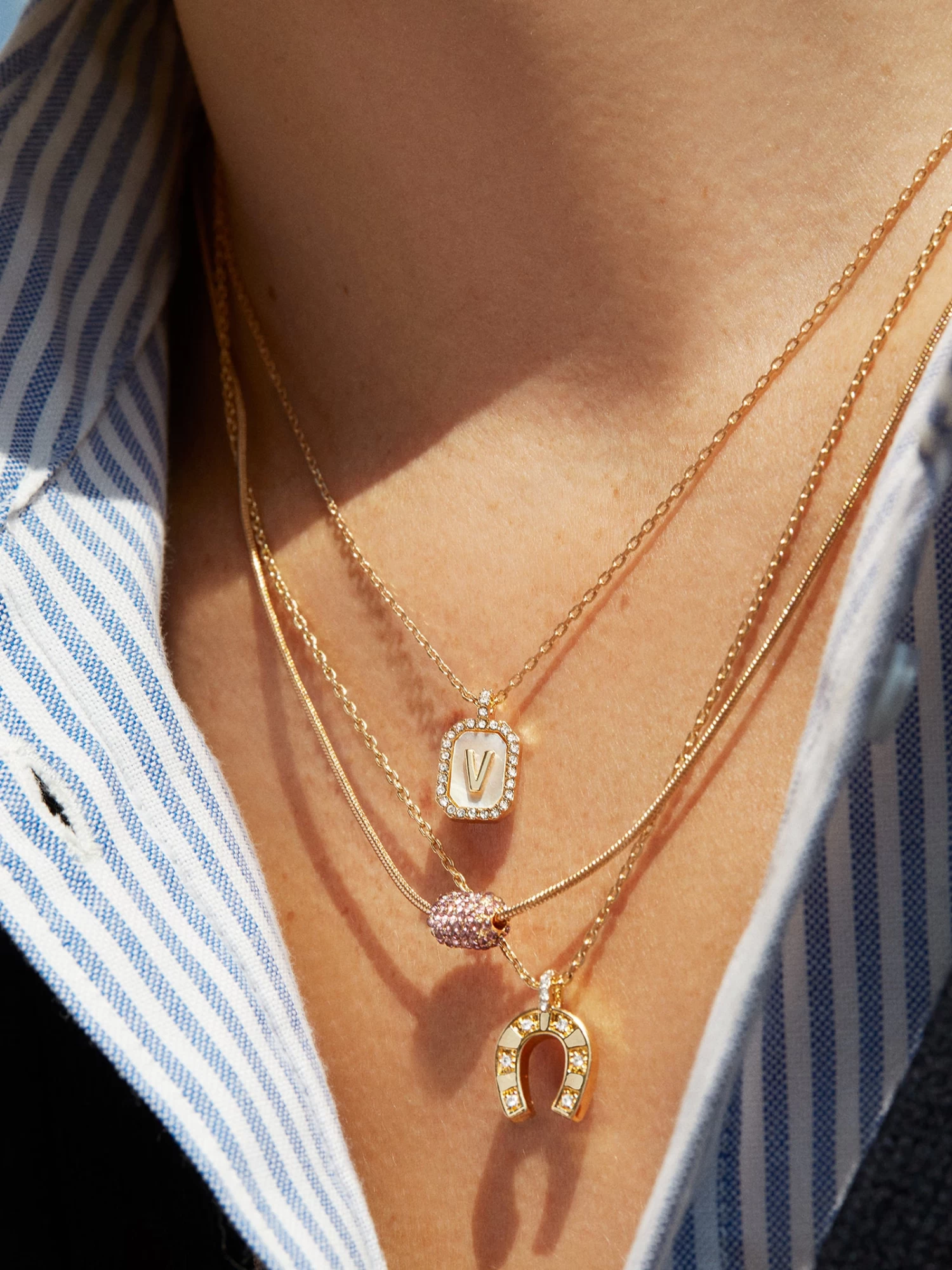 This piece is sure to earn you plenty of compliments. The Lucky Charm Necklace features a dainty gold chain and a gold and crystal horseshoe pendant. A subtle yet optimistic reminder, this is a lucky talisman you’re sure to tote with you everywhere. Give as a gift they’ll love forever or treat yourself to this meaningful memento.