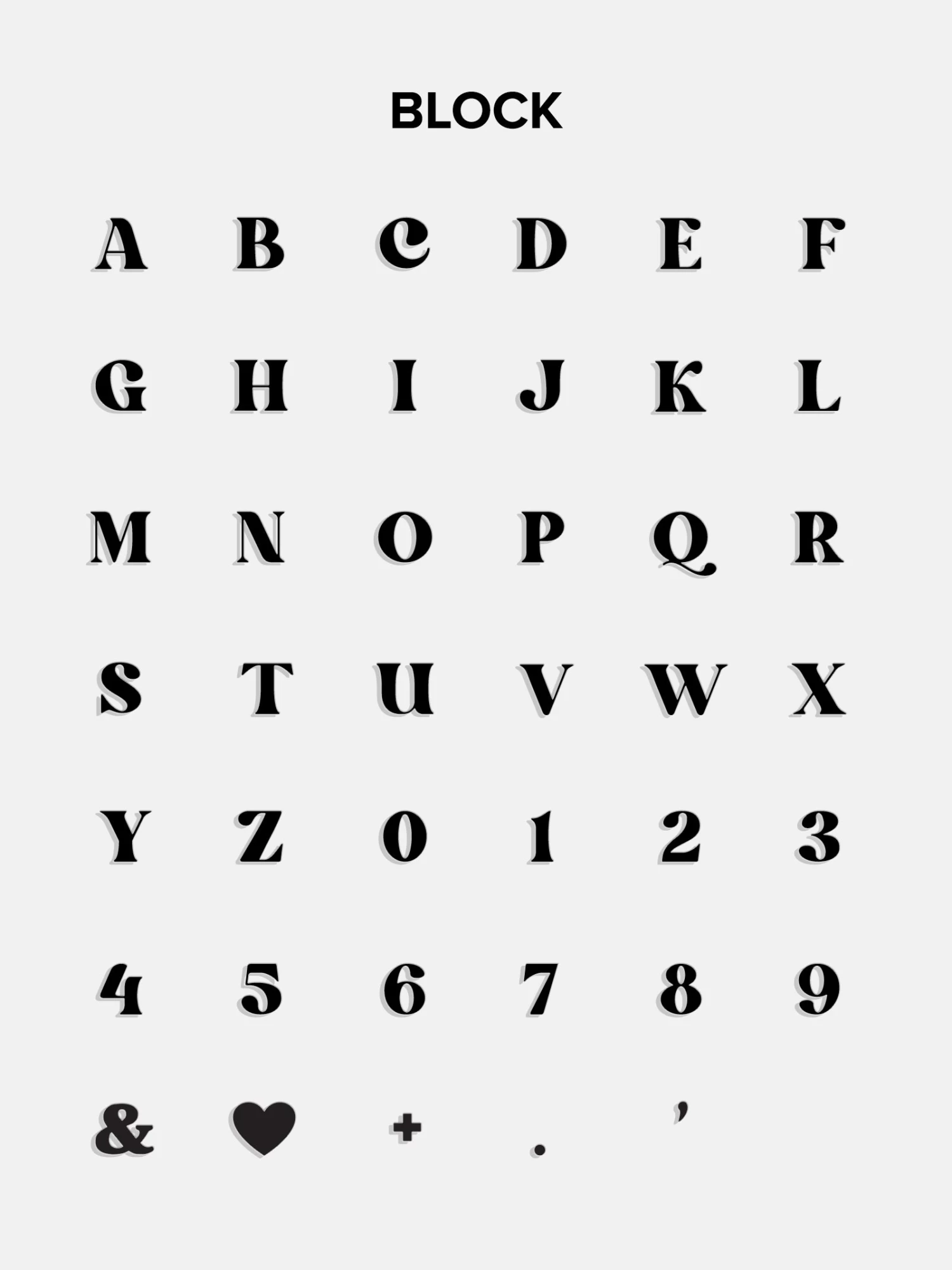 Please note: You can add up to 12 characters to this style. Please see the symbol key for details.