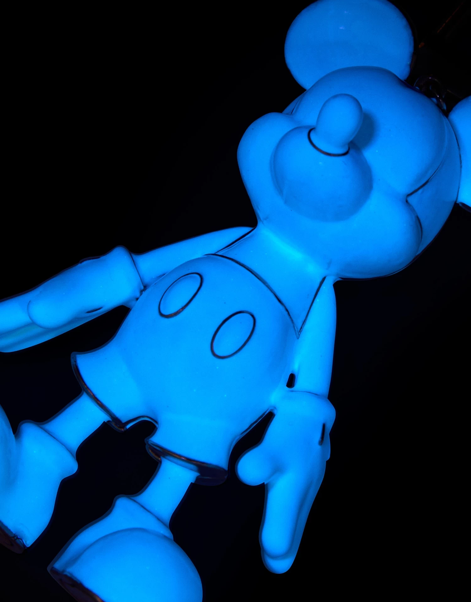 Add a touch of Disney wherever you go! Our Mickey Mouse Bag Charm has proven to be a Disney fan favorite and is the must-have Disney keychain. It’s the perfect addition to any purse, backpack, or tote. In the daytime, Mickey Mouse’s likeness is crafted with luxe white enamel. At night, Mickey Mouse glows in the dark!