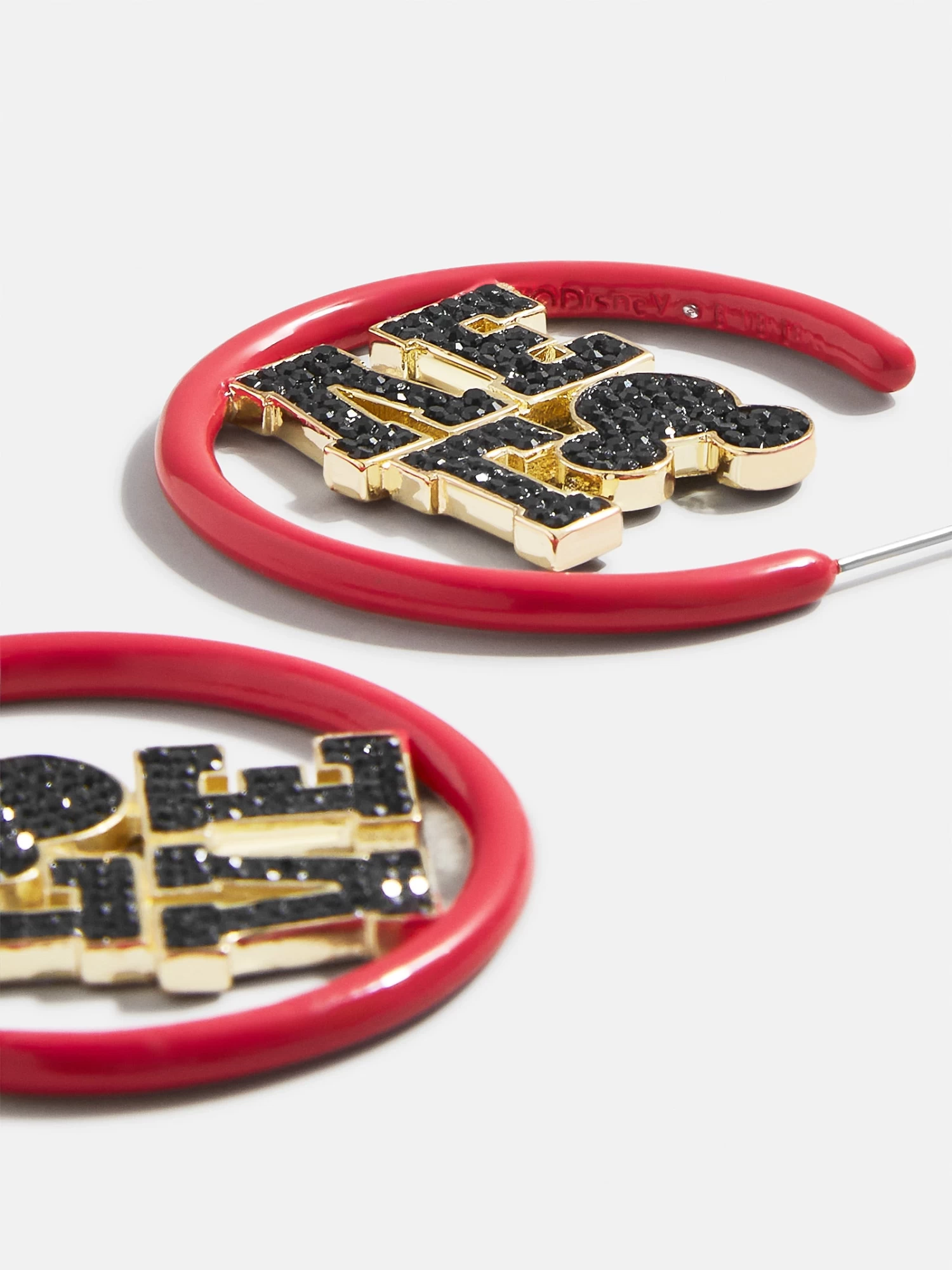 Oh boy, oh boy, aren’t these earrings cute? Embrace the Disney love (and the love of Disney) with the Mickey Mouse Disney Love Earring Hoops. Choose these romantic hoops in red and black for a love that’s bold, or gold and clear for a love that shines.