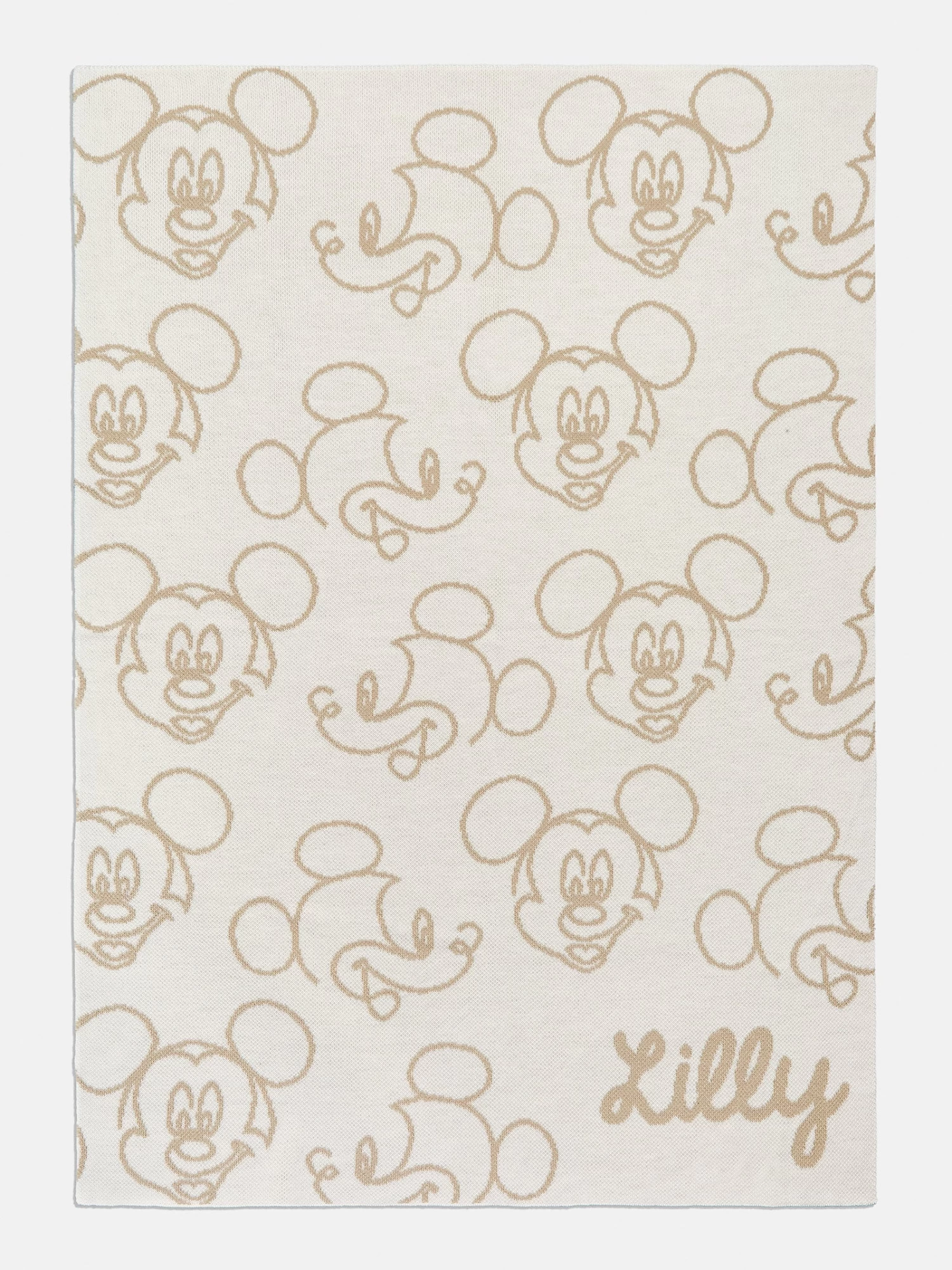 Add a little dose of Disney to every single space with our Mickey Mouse Disney Custom Blanket: Beige / Natural. Crafted in our most popular custom blanket colors, this piece features a repeating pattern of Mickey Mouse’s face and the script font customization of your choice in the bottom right corner. Please check the product details for measurements.
