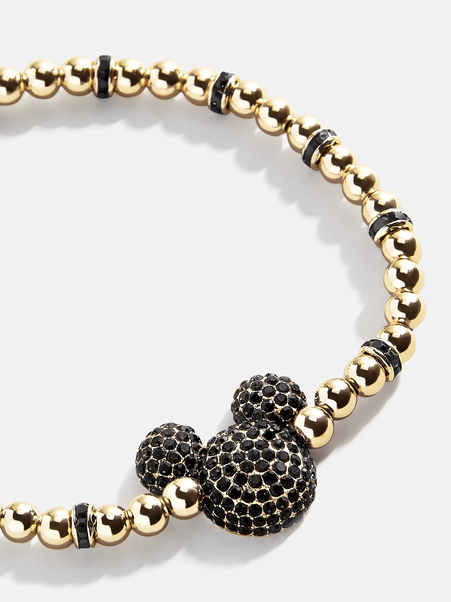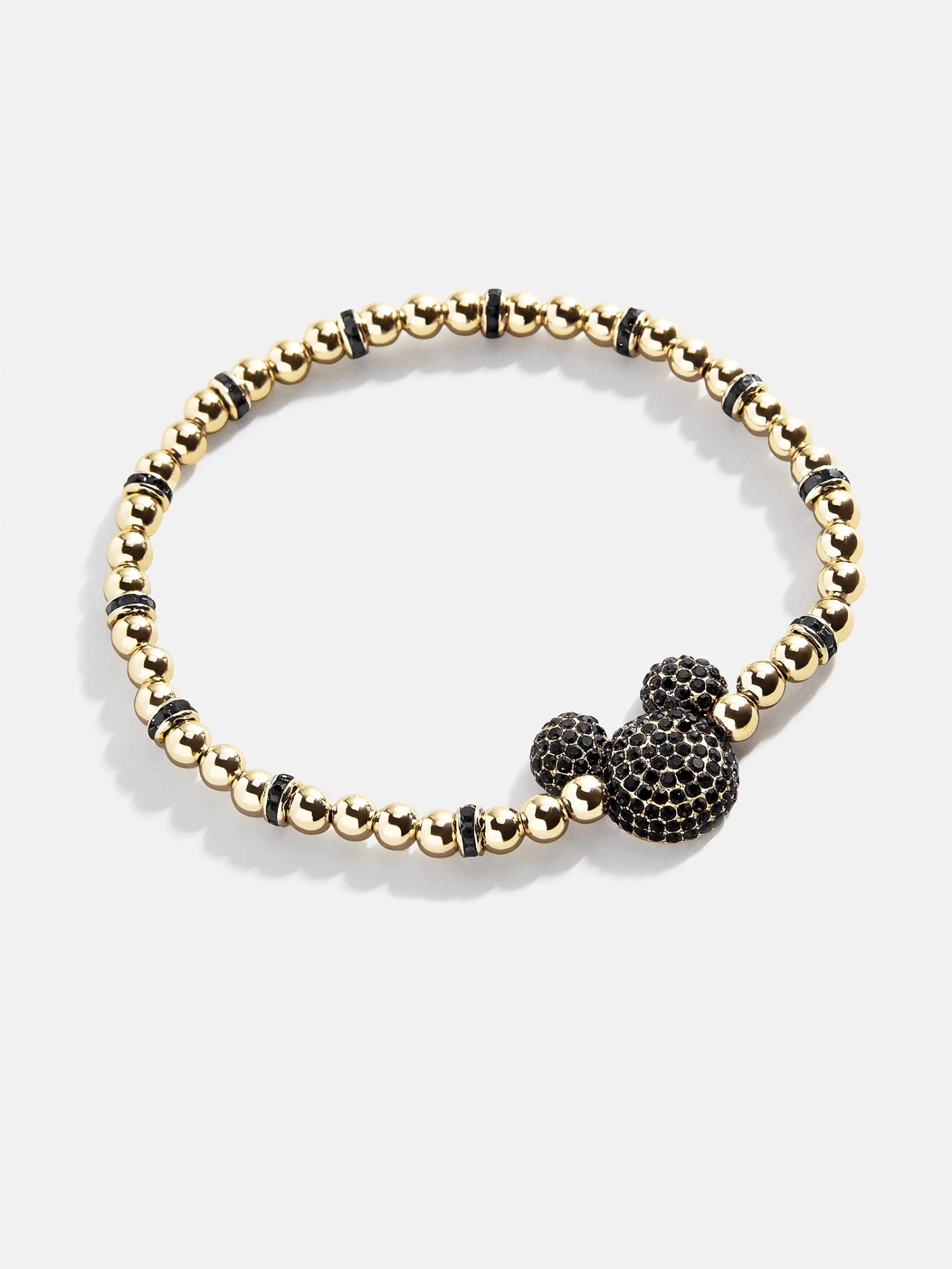 Don’t miss out on Mickey Mouse jewelry like you’ve never seen before. The Mickey Mouse Disney Pavé Bracelet features our super stackable Pisa Bracelet design with a glass stone covered Mickey Mouse head in the center. This bracelet features 4mm beads.