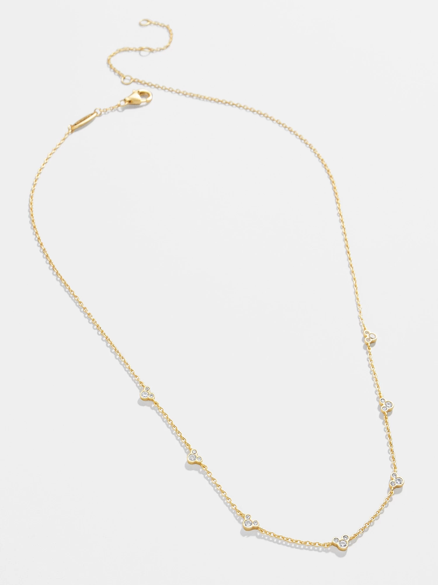 Perfect for layering, the Mickey Mouse Outline Necklace is a dainty take on your favorite character. A Mickey Mouse outline repeats across the elegant chain. Even better? It’s crafted from 18K gold vermeil and the Mickey Mouse outlines feature Cubic Zirconia stones.