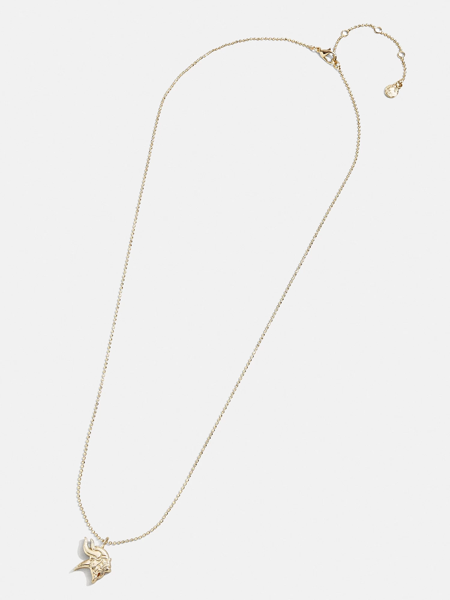 Every fan should have a good luck charm, so consider the  Minnesota Vikings NFL Charm Necklace yours. Using gold plating, this necklace puts the Vikings logo front and center. Plus, it’s strung across our beloved Stephanie gold chain, so you’ll find the perfect fit every time.