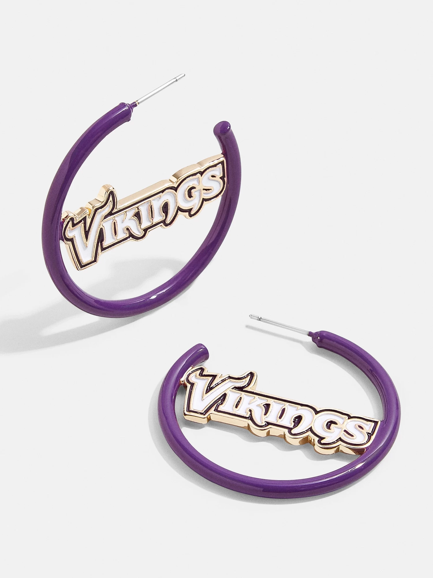 If the hoops are in, the game is on. The Minnesota Vikings NFL Logo Hoops feature sleek enamel in matching team colors to proudly frame the Vikings name. Fastened with a post back closures, these earrings are ready to take down the competition.
