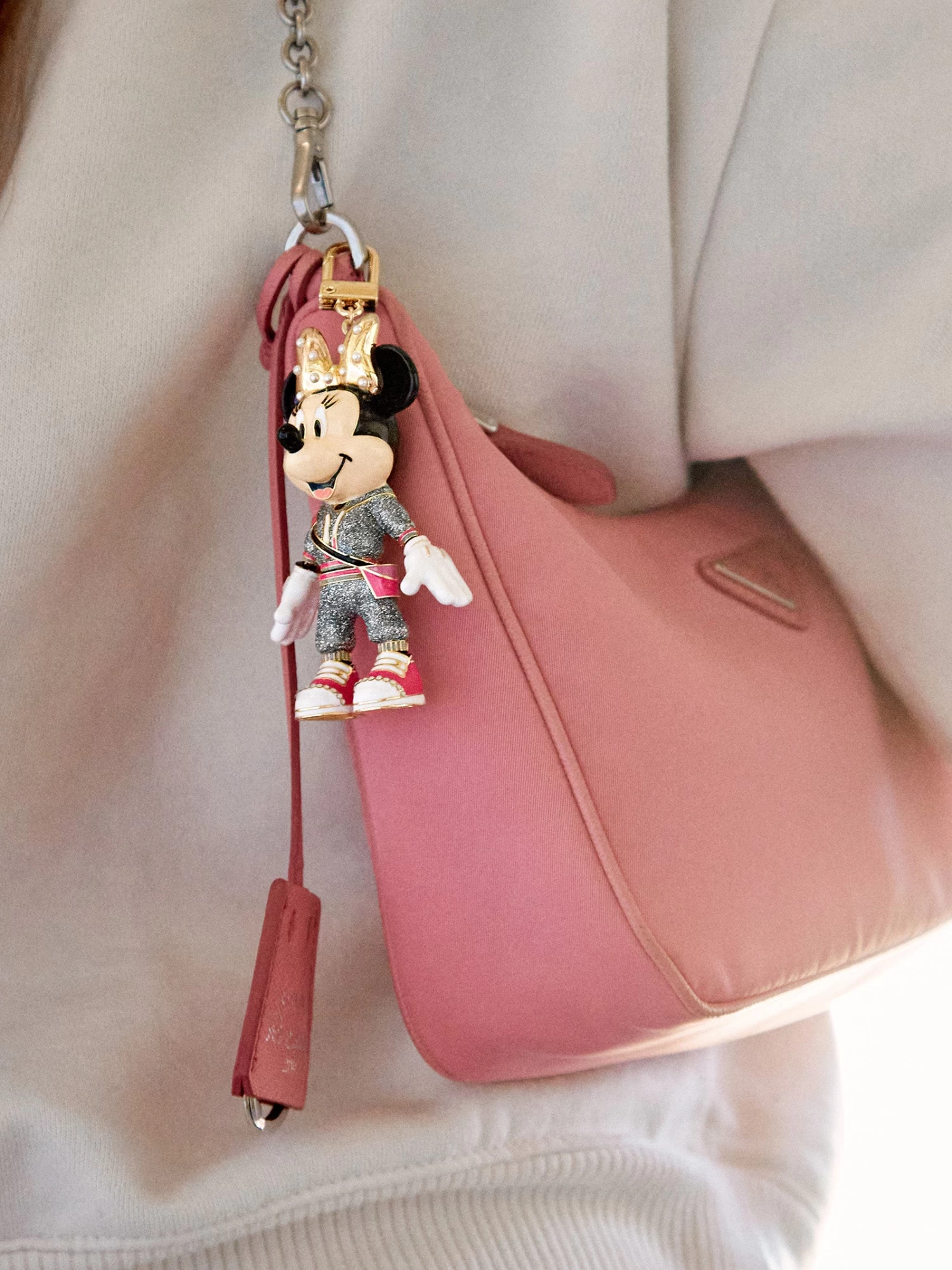 Add a touch of Disney wherever you go! Our Disney Bag Charms have proven to be a Disney fan favorite. They’re the perfect addition to any purse, backpack, or tote. Everyone loves an sporty look, and Minnie Mouse is no exception. The Minnie Mouse Disney Bag Charm – Athleisure proves joggers are the ultimate cute and comfy style. Fasten to your go-to tote to add some charm to every casual look.