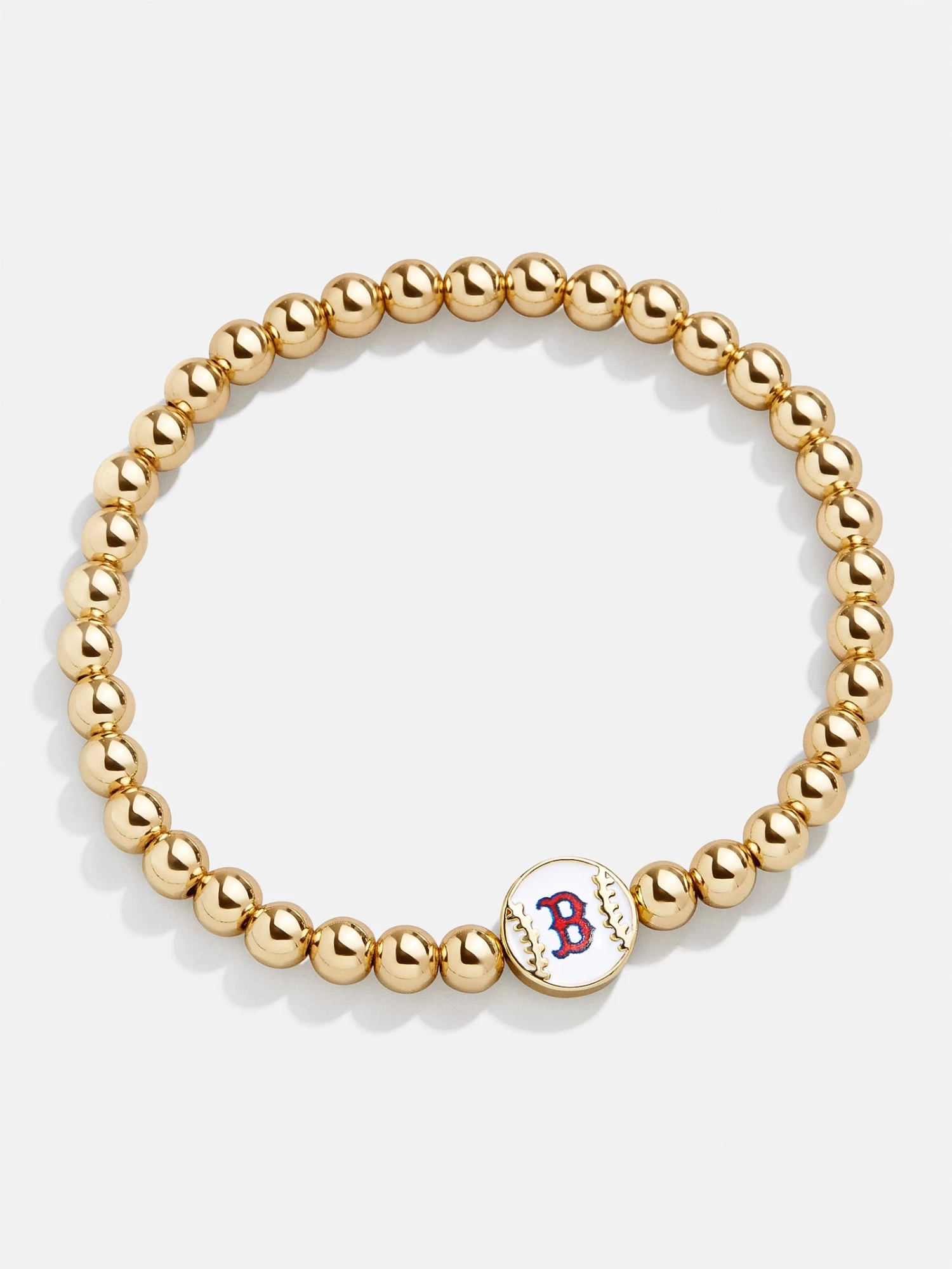 Add a subtle hint of your favorite team to your wrist stack. The Boston Red Sox MLB Gold Pisa Bracelet features an enamel bead with the team’s logo in the center. It’s also reversible, featuring a petite baseball on the flipside. Better yet, it’s crafted in a stretch bracelet design, meaning you can take it on and off with ease. This bracelet features 5mm gold ball beads.