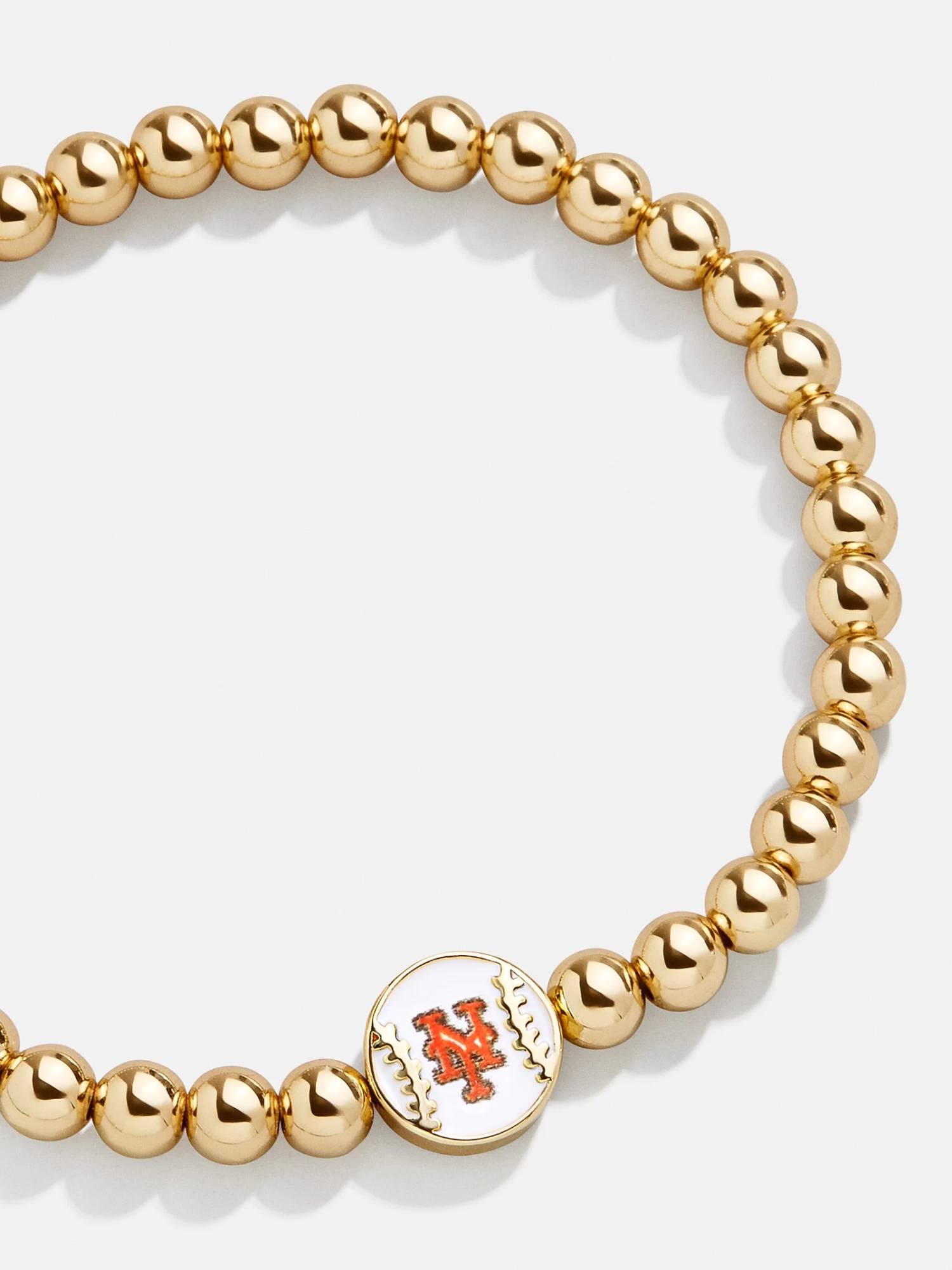 Add a subtle hint of your favorite team to your wrist stack. This New York Mets bracelet features an enamel bead with the team’s logo in the center. It’s also reversible, featuring a petite baseball on the flipside. Better yet, it’s crafted in a stretch bracelet design, meaning you can take it on and off with ease. This bracelet features 5mm gold ball beads.
