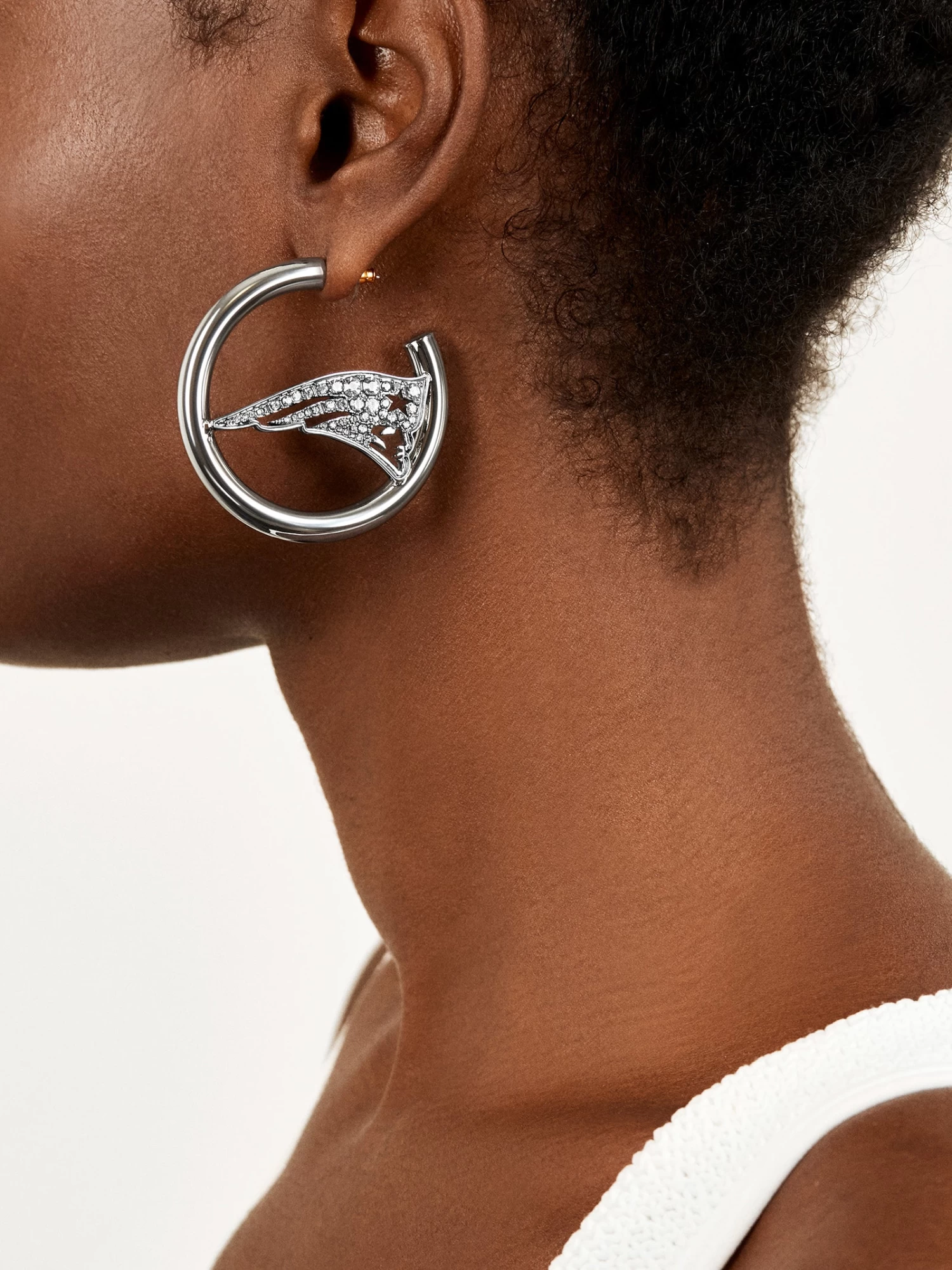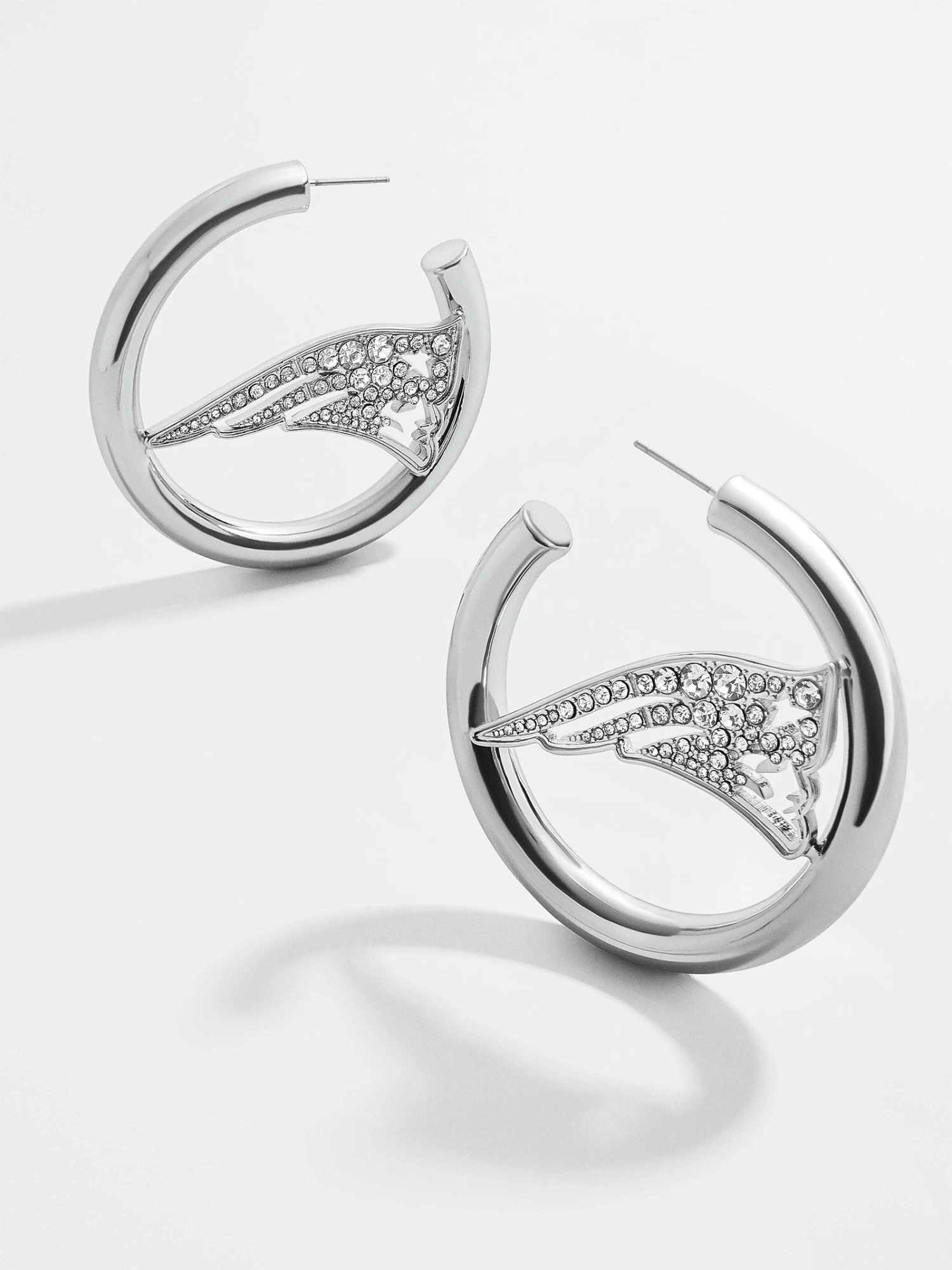 Go Pats! Be the most fashionable fan in the stadium wearing the New England Patriots Logo Hoops. This classic silver hoop features the Pats’ logo in pretty pavé for extra sparkle.