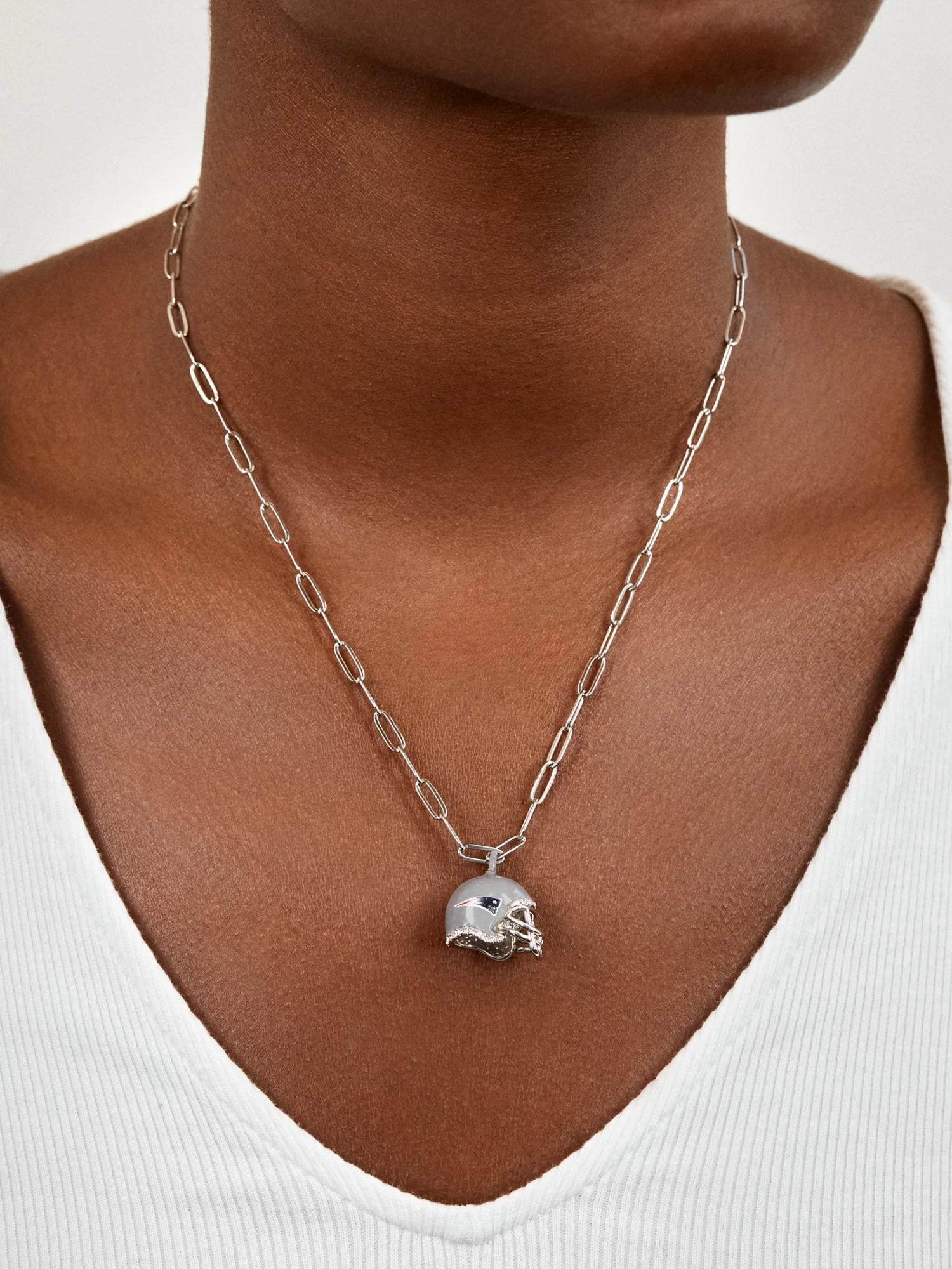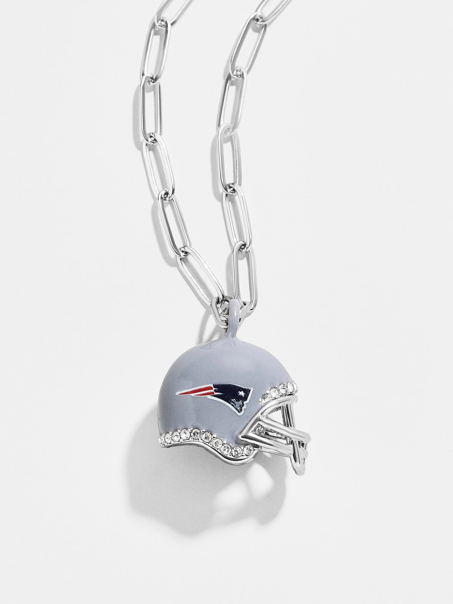 Go Pats! Add a touch of team spirit to your look with this New England Patriots Necklace. Complete with a helmet charm on a silver paperclip chain, it’s bound to be your game day go-to.