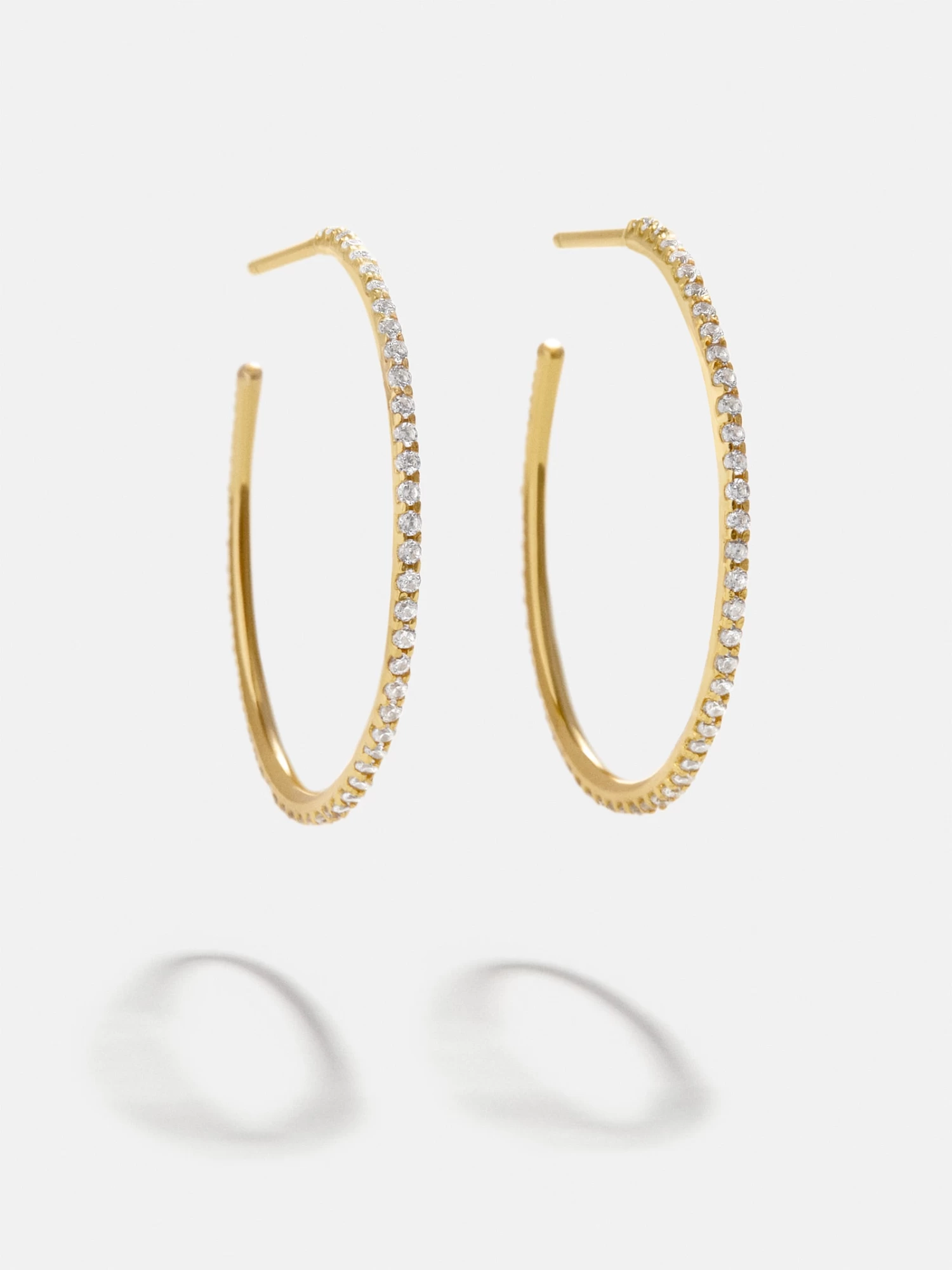 Elevate your usual hoops with a touch of chic sparkle. The Niata 18K Gold Earrings are available in your choice of 6 sizes. They’re also crafted with 18K gold plated sterling silver and Cubic Zirconia stones. Fitted with a post-back closure, they’ll shine and stay put all day long.