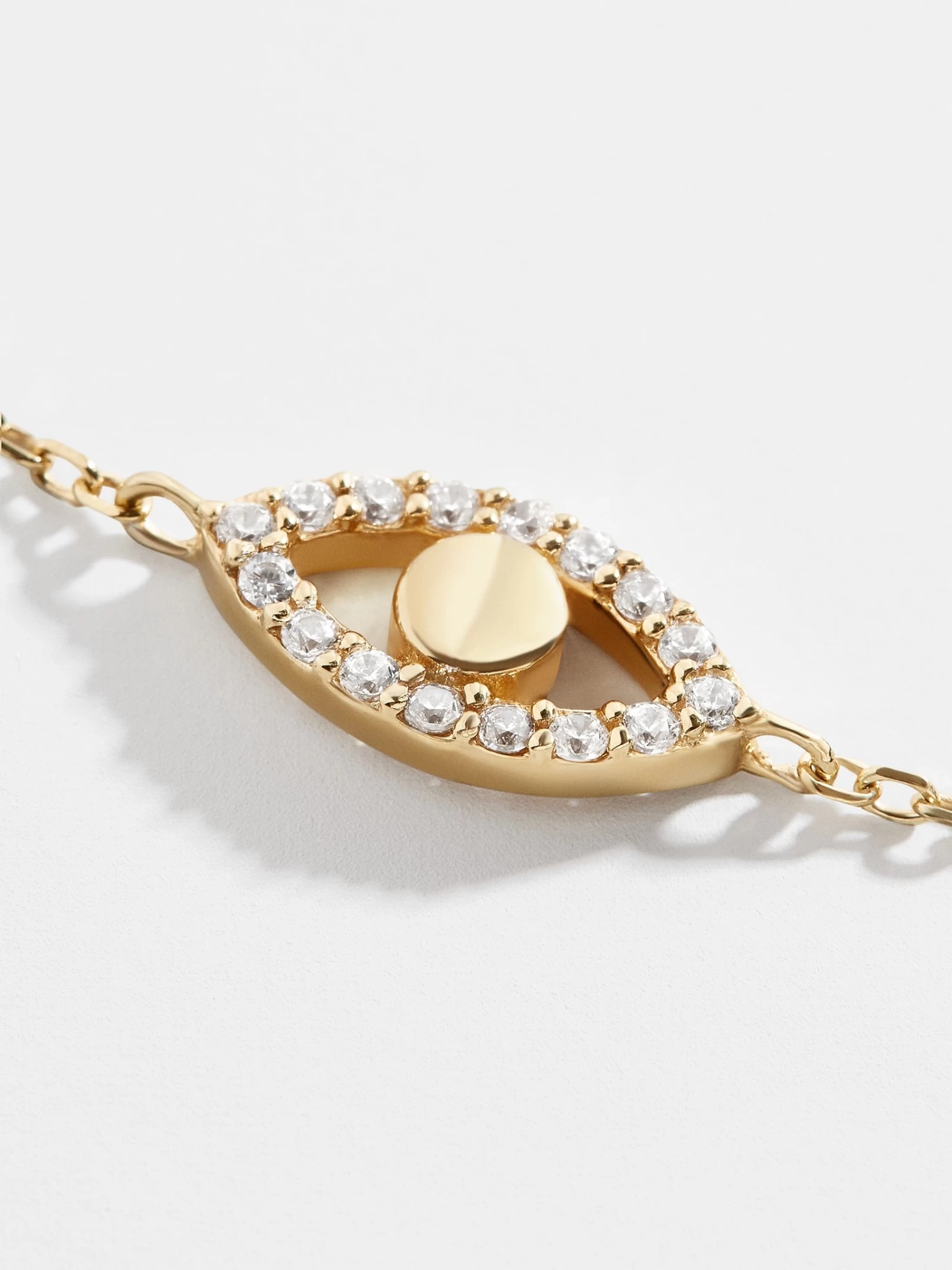 Carry around something with a little extra protection, like our Ojo 18K Gold Bracelet. This delicate gold chain bracelet features an intricate evil eye bead in the center. Even better, this piece is crafted with 18K gold plated sterling silver and Cubic Zirconia stones.