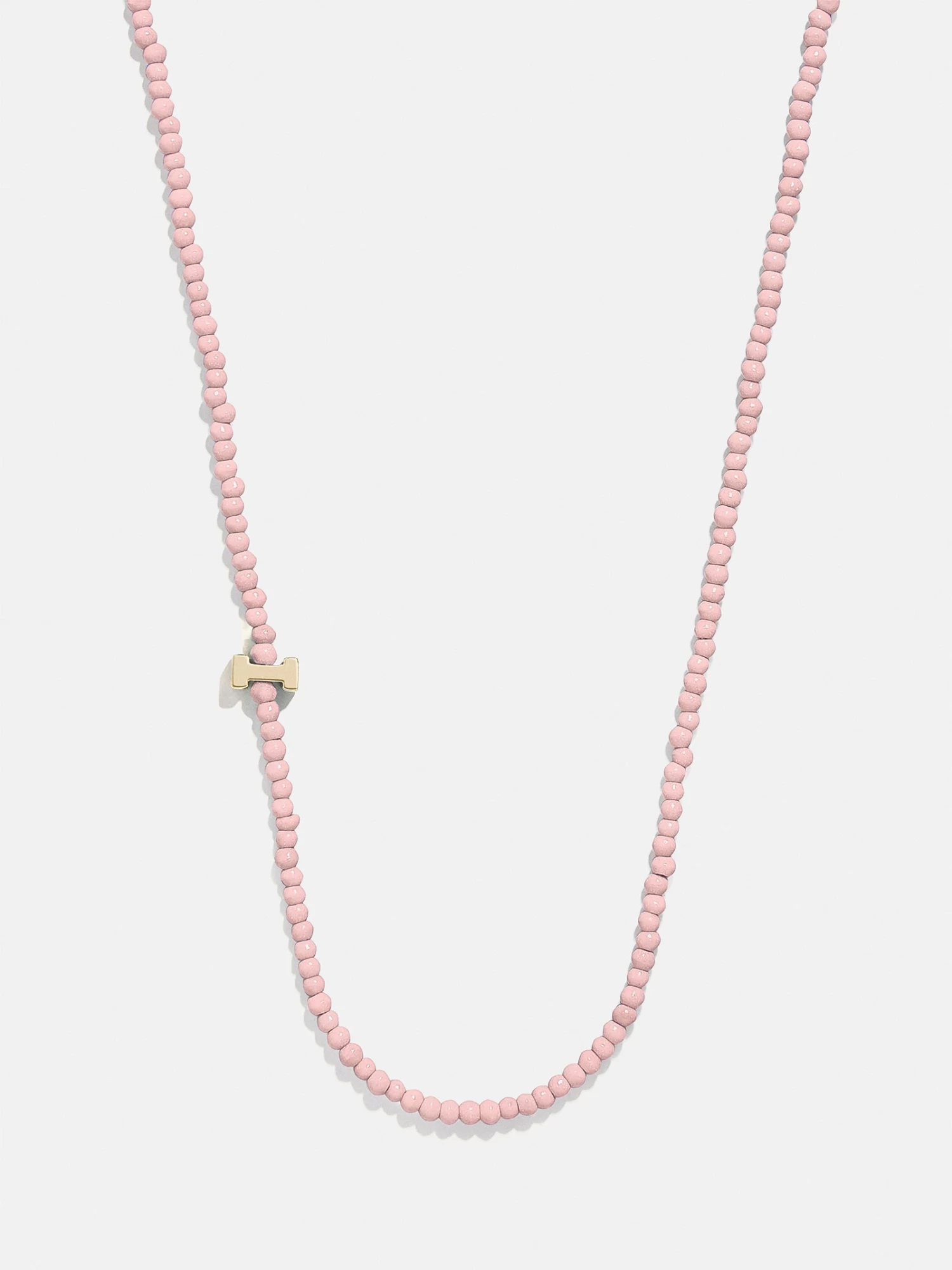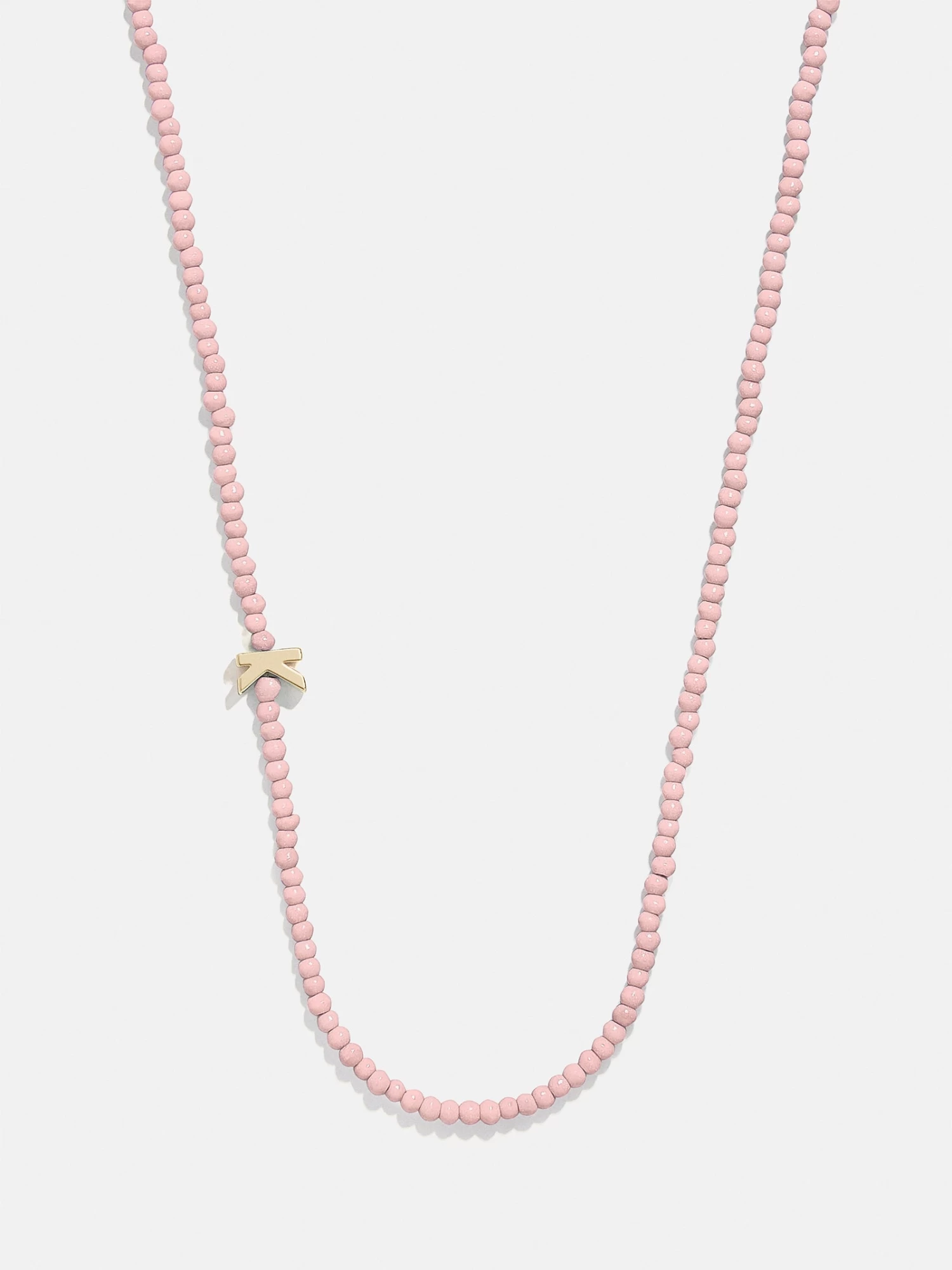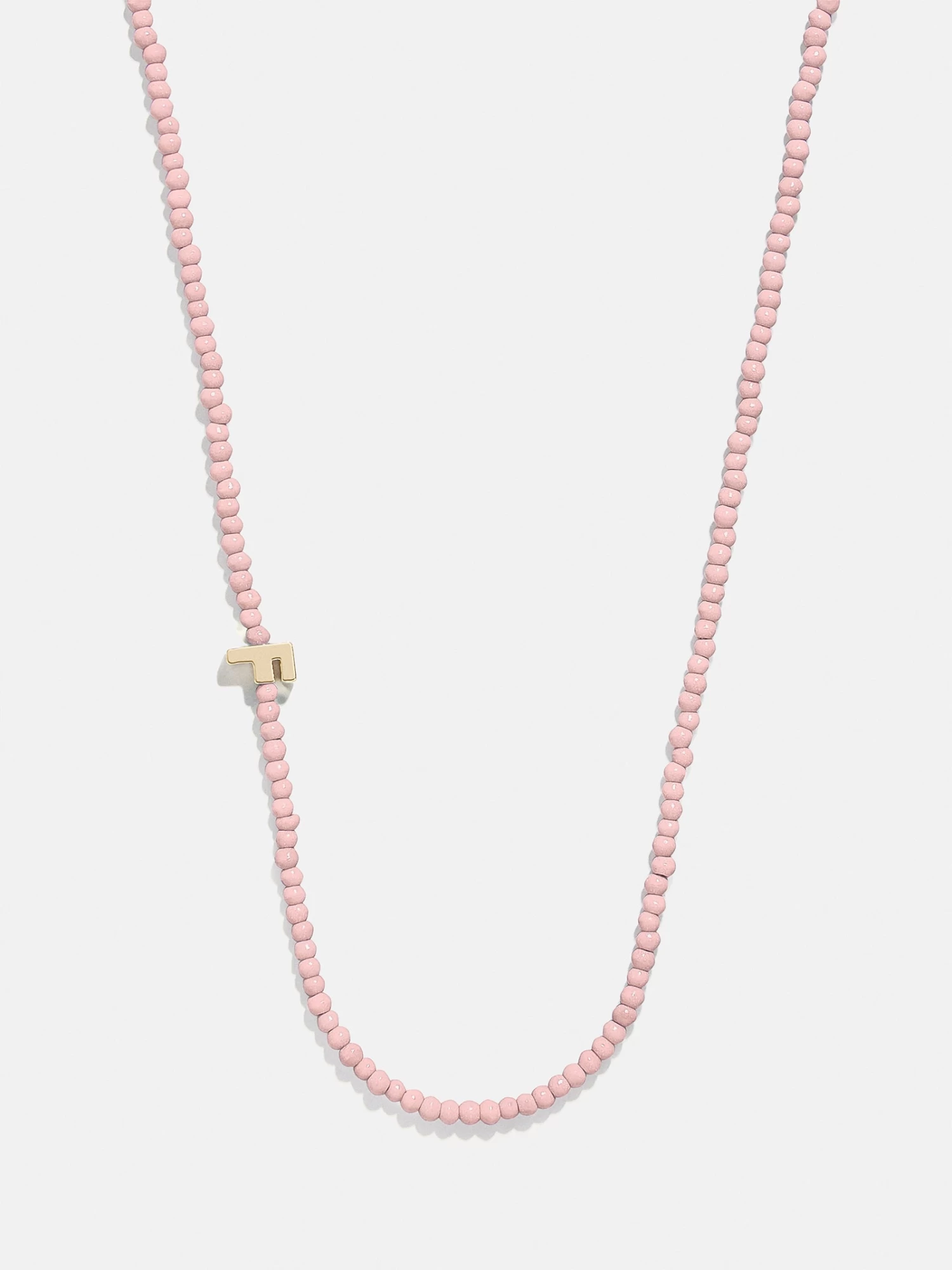 Add a pop of color to your everyday necklace stack with the Semi-Precious Initial Necklace. This pink strand of petite beads is complete with the gold initial of your choice in a block letter font. The letter on each necklace sits asymmetrically, adding a little extra interest to your accessory repertoire. We’re sure you’re going to wear this bright, happy piece all season long (and beyond).