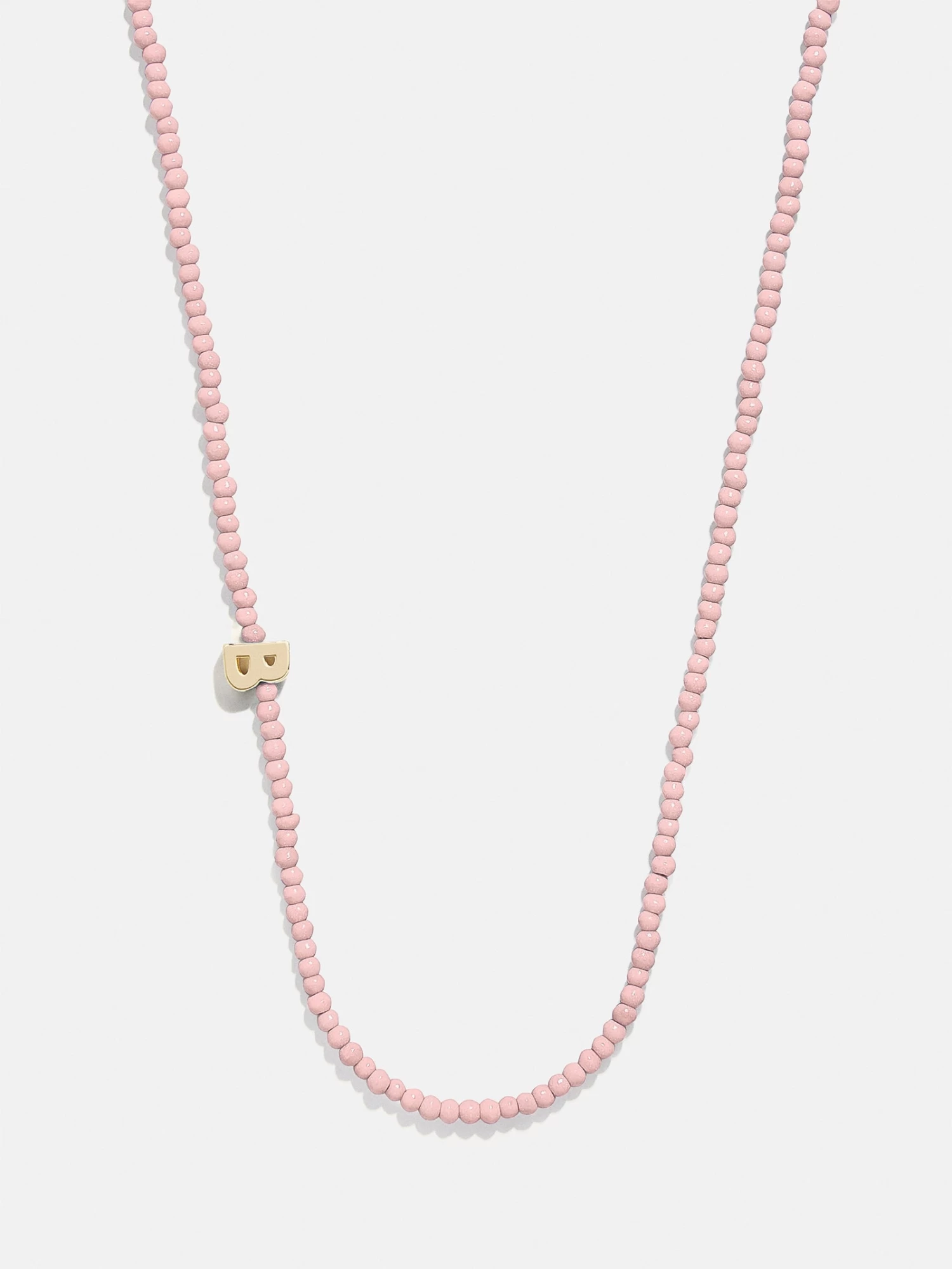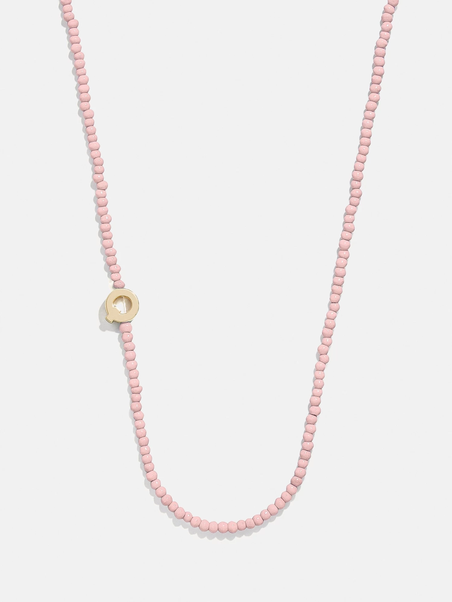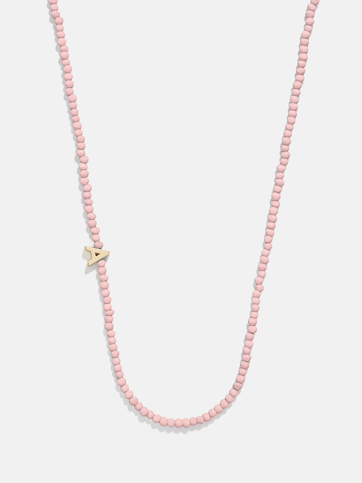 Add a pop of color to your everyday necklace stack with the Semi-Precious Initial Necklace. This pink strand of petite beads is complete with the gold initial of your choice in a block letter font. The letter on each necklace sits asymmetrically, adding a little extra interest to your accessory repertoire. We’re sure you’re going to wear this bright, happy piece all season long (and beyond).