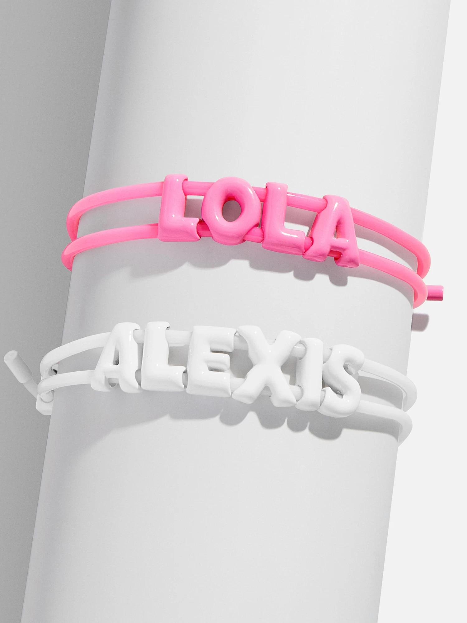 We think you’re ready for this jelly. Our Jelly Custom Slider Bracelet is sweat proof, extra flexible, and super cute (obviously). This bright bracelet is the grown-up version of the jelly sandals of your childhood and meant to be worn alongside a bevy of other bright, mood-lifting bracelets. Choose a name, initials, or favorite phrase to customize your bracelet with – you’re sure to have this style on repeat. See our Letter Key for all options available.