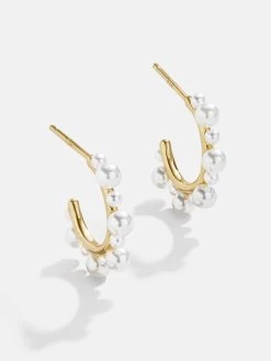 The Serena 18K Gold Earrings are guaranteed to be one of your new favorites. This pair of classic gold hoops features a welcome twist: a cascade of pearls in a variety of sizes is placed on the outside of the hoop. Even better? Crafted from 18K gold plated sterling silver, they’ll last you for years to come.