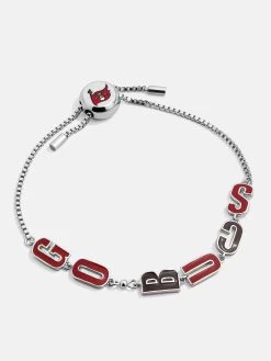 Our NFL Slogan Bracelets are fan gear like you’ve never seen before. The Seattle Tampa Bay Buccaneers Silver Slogan Bracelet features the phrase “Go Bucs” in red and black enamel letter beads. This silver bracelet is topped off with the Bucs’ logo on the pull-tie closure.