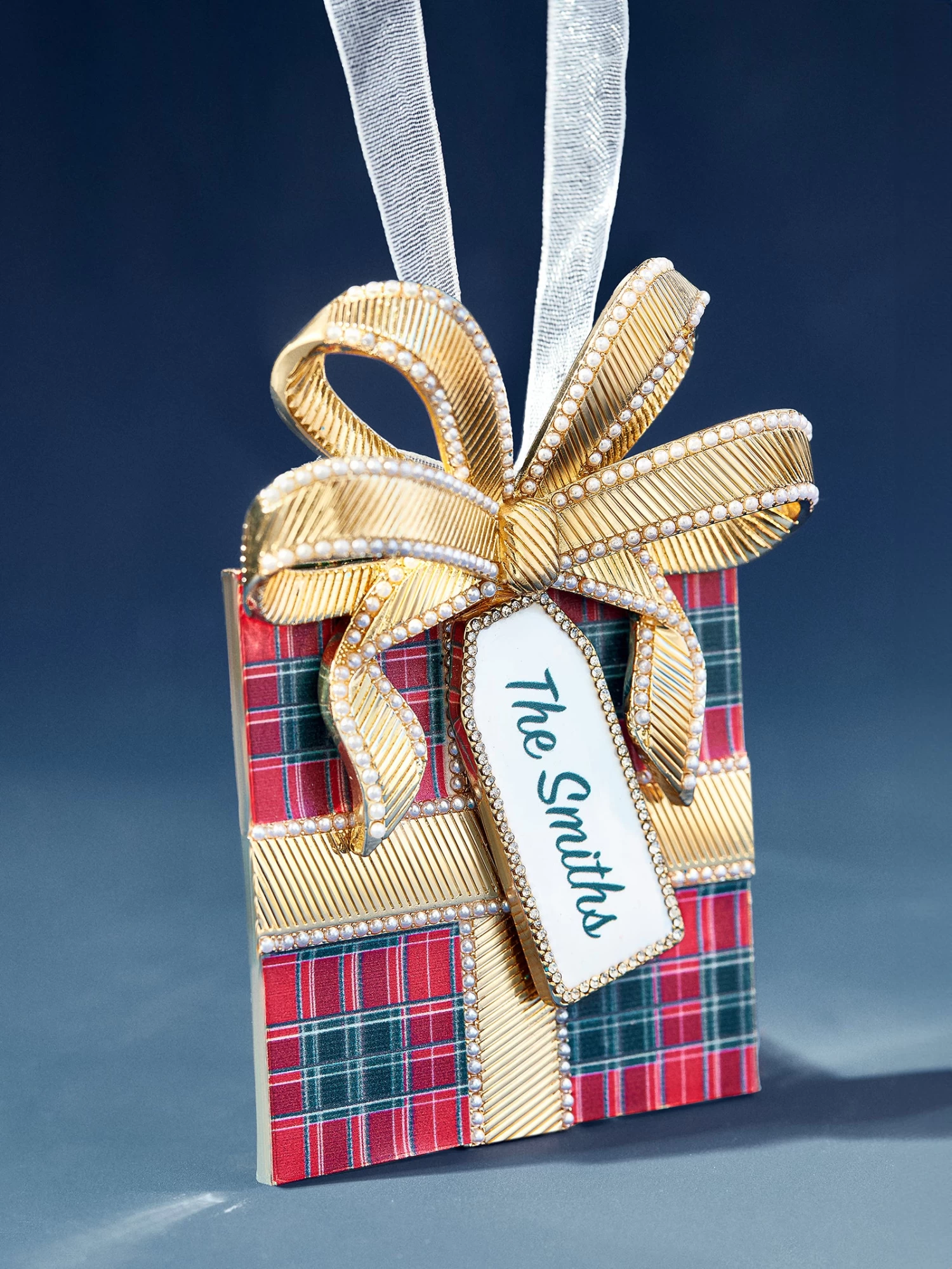 Add something that shines to your tree this year. A beautifully hand painted one-of-a-kind custom present ornament features a printed gift tag with words to fit the customization of your choice.