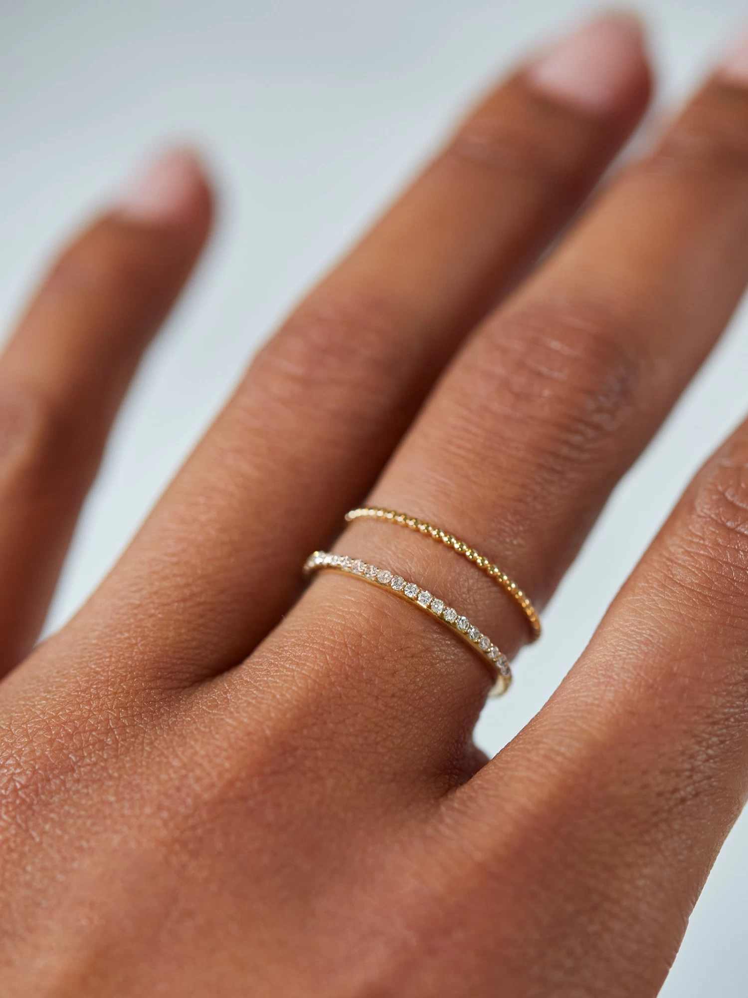 Stacking rings are here to stay, and our Thin Solid Gold Ring is no exception. Designed with a barely-there width and recycled 14K gold, this ring can be worn on any digit you please. Layer it with a few other fine rings or let it shine all on its own.