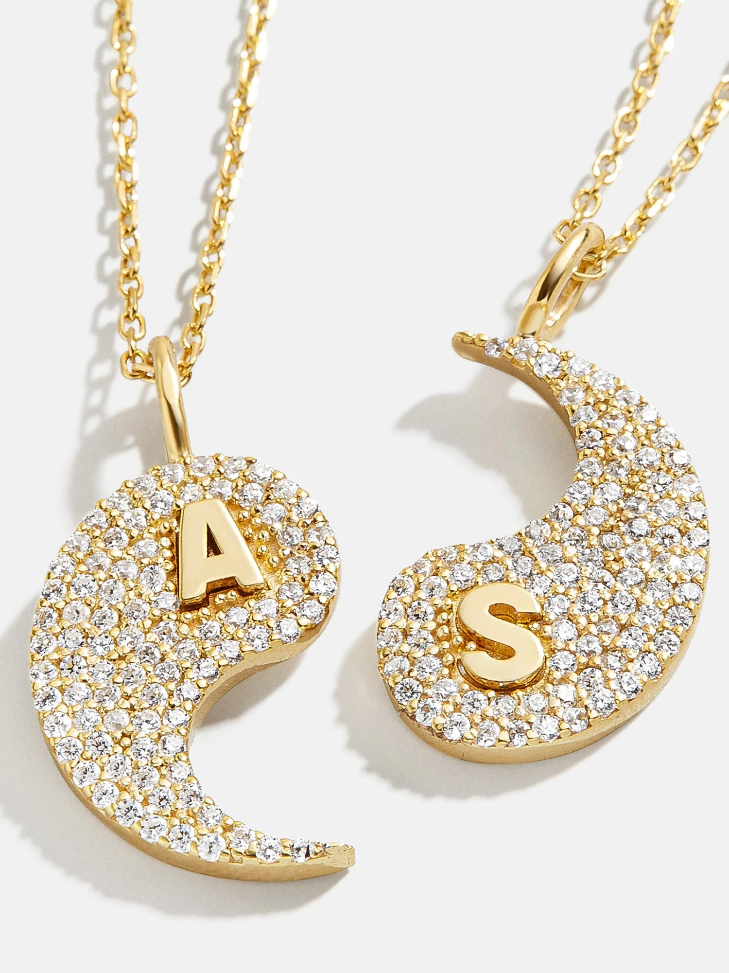 Best friends? Prove it. The Yin Yang 18K Gold Custom Best Friend Necklaces feature two halves of a yin yang symbol. Add each of your initials, then keep one half for yourself and gift the other to your best friend as a memento of your cherished relationship. Even better, each necklcace is crafted with 18K gold plated sterling silver and Cubic Zirconia stones, meaning they’ll last you for years to come (and through all the future memories the two of you will make).